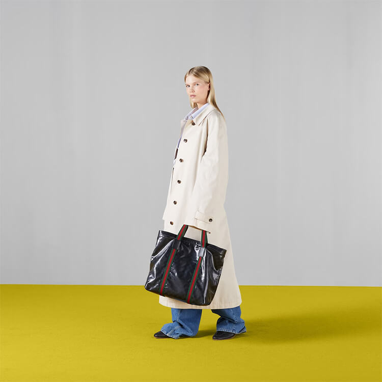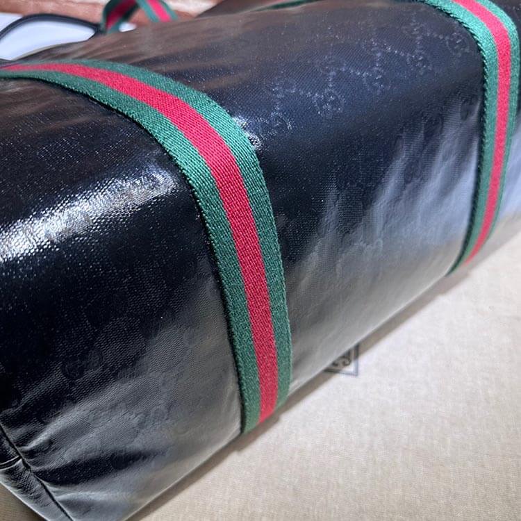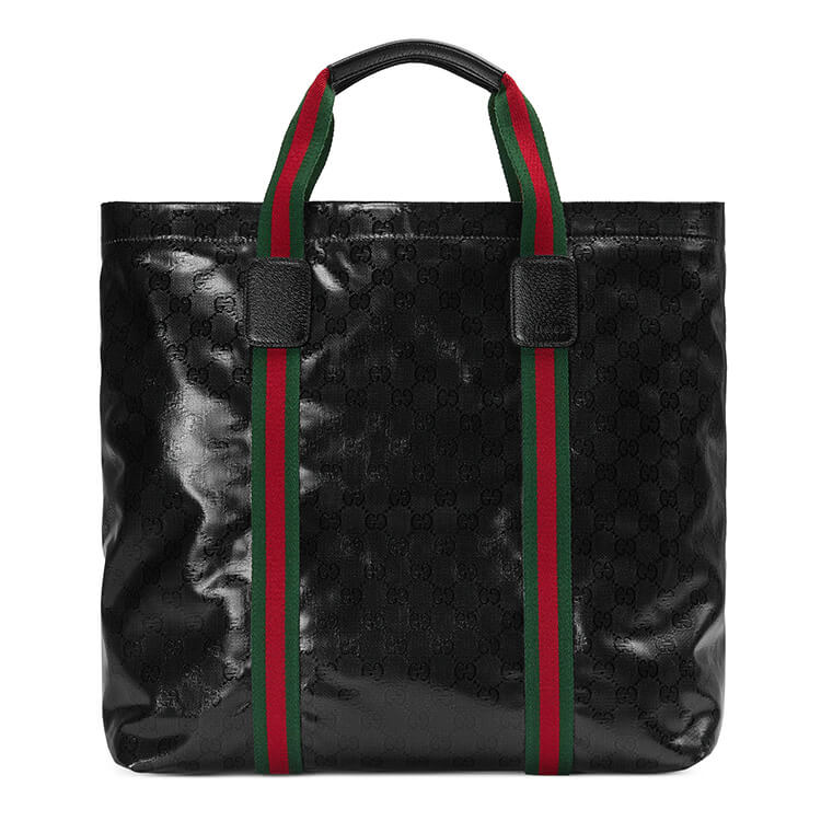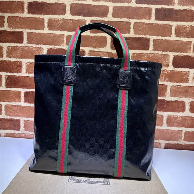 1:1 Mirror QualityReplica Gucci GG Crystal Medium Tote BagStyle:763287 FACKN 1064Black GG Crystal canvasBlack leather trimGreen and red Web grosgrainNylon lining1 zip pocketHandle with 4.3″ dropMedium size: 16″W x 15.3″H x 6.2″D