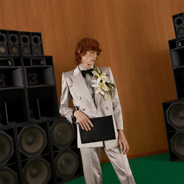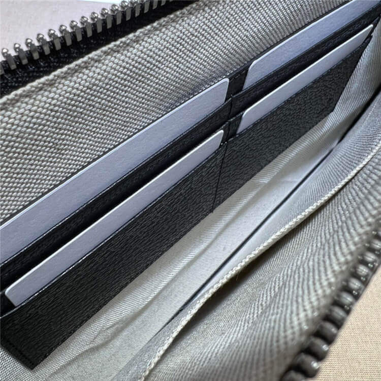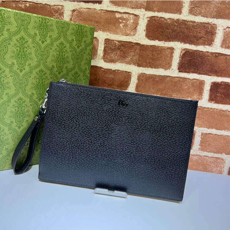 1:1 Mirror Quality Replica Gucci GG Marmont Pouch Style:475317 1T56F 1000 Black leather Tonal resin hardware Cotton linen and moiré lining Removable leather wrist strap Six card slots and one open pocket Zipper closure 12″W x 8″H x .6″D The model is 6’1″ tall