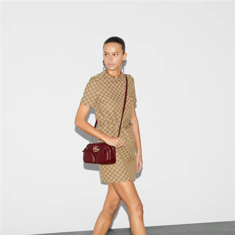 Adjustable leather and chain shoulder strap drop from 22.8″ to 24.4″