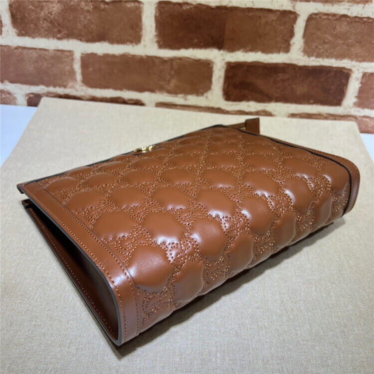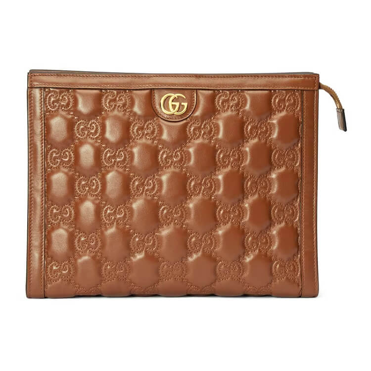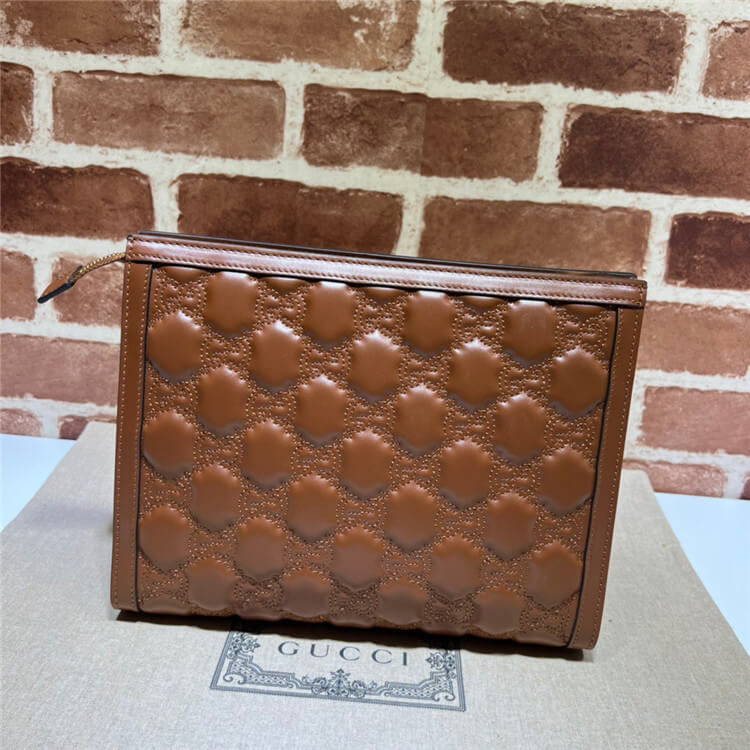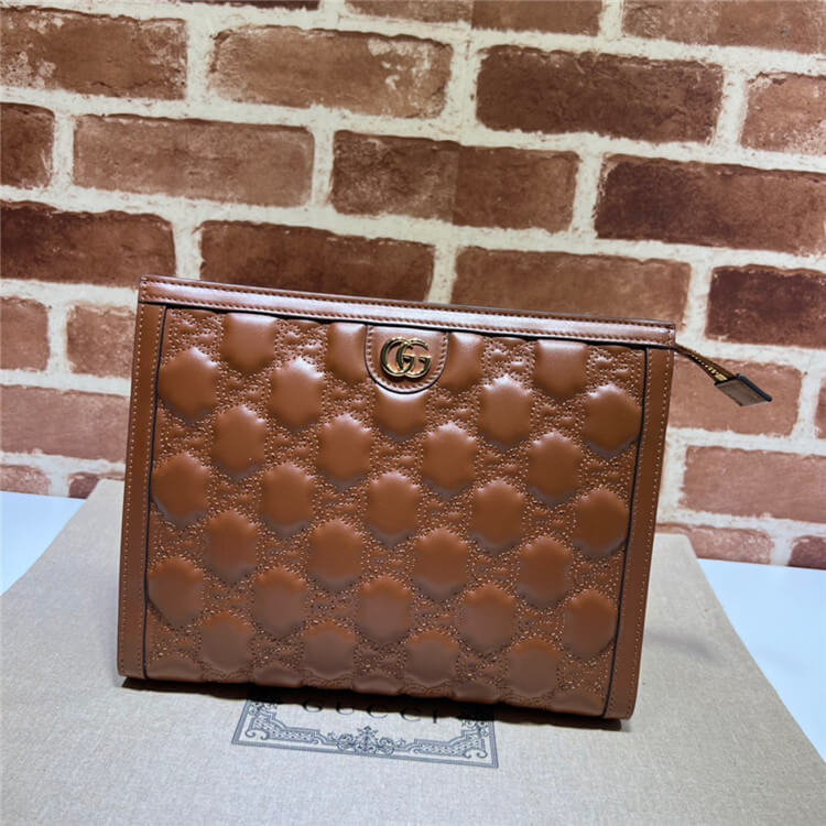 1:1 Mirror QualityReplica Gucci GG Matelasse PouchStyle:723780 UM8IG 2546Light brown GG Matelasse leatherGold-toned hardwareDouble GInside: 1 open pocketZip closure10.6″W x 8.2″H x 2.8″D
