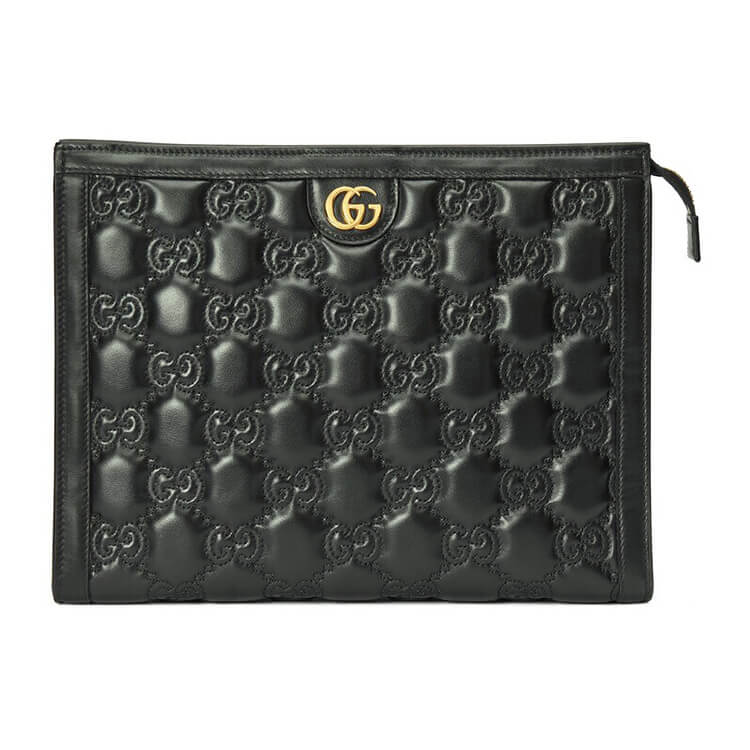 1:1 Mirror QualityReplica Gucci GG Matelasse PouchStyle:723780 UM8IG 1000Black GG Matelasse leatherGold-toned hardwareDouble GInside: 1 open pocketZip closureW27cm x H21cm x D7cm