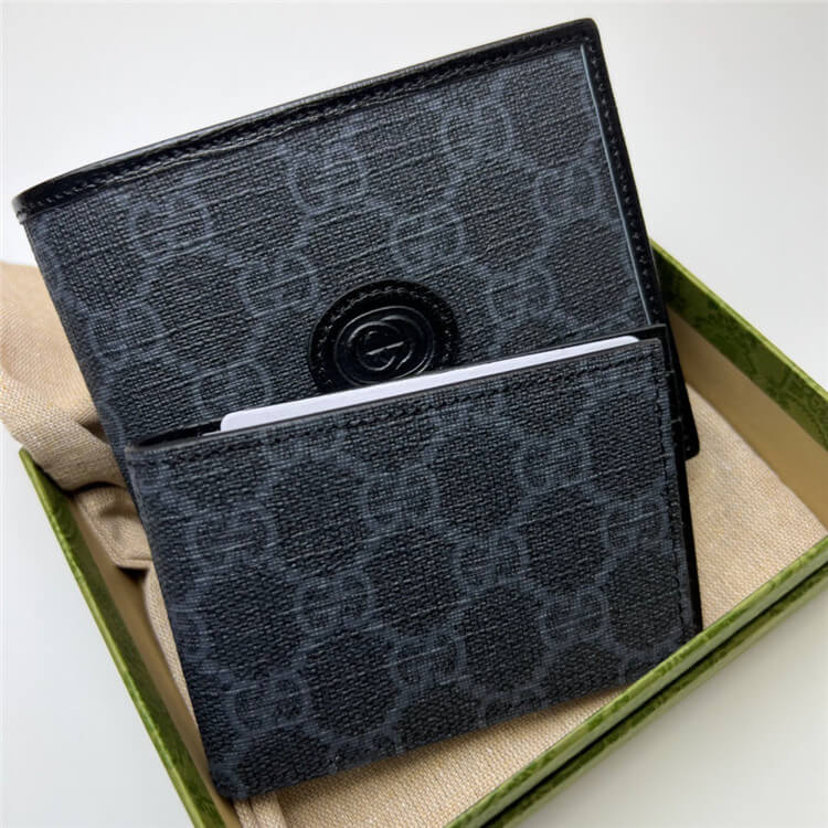 1:1 Mirror Quality Replica Gucci GG Wallet With Removable Card Case Style:723171 92TCF 1000 Black GG Supreme canvas Black leather trim Oval Interlocking G leather tag Inside: 8 card slots, 1 bill compartment and 1 removable card case Closed: 4.5″W x 3.5″H Open: 9.4″W x 3.5″H