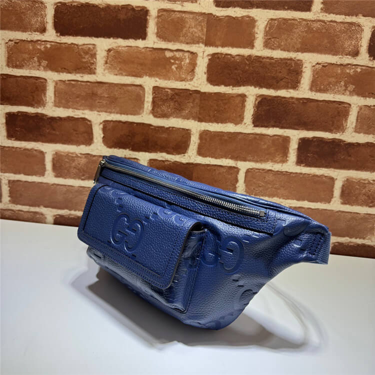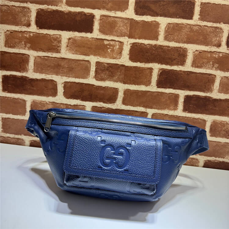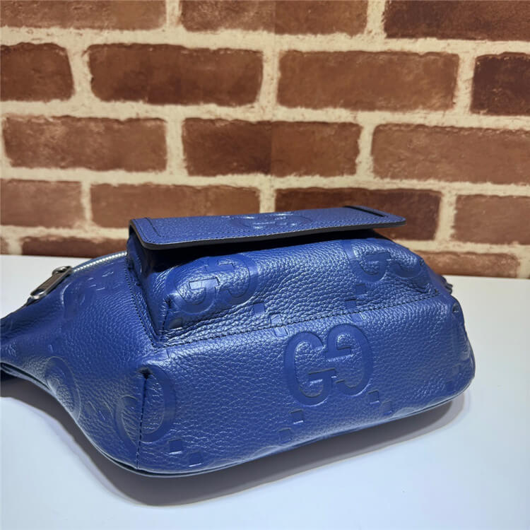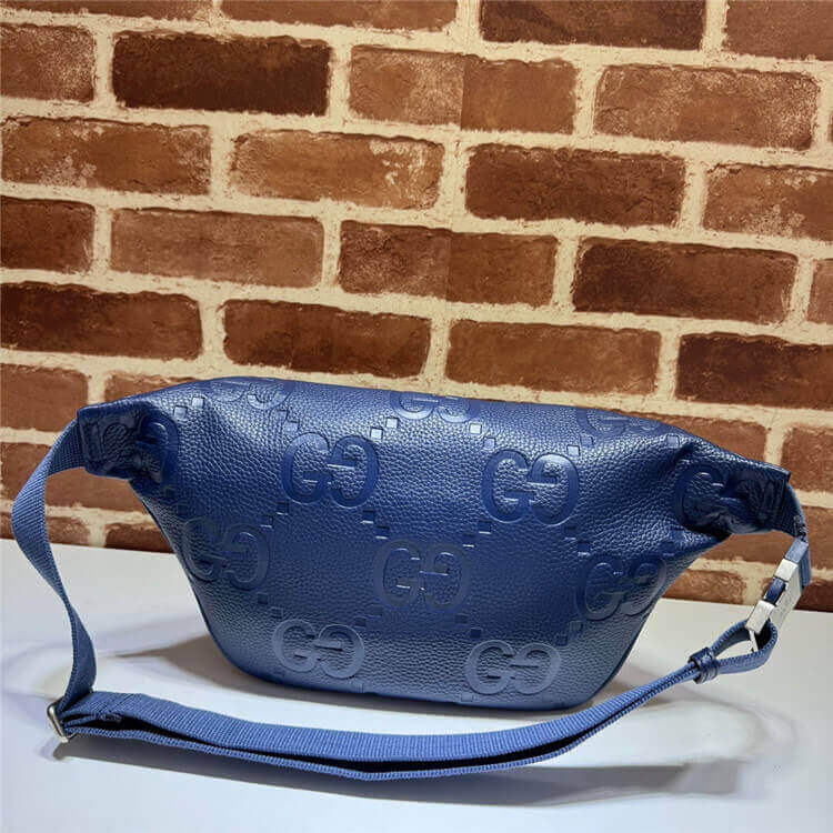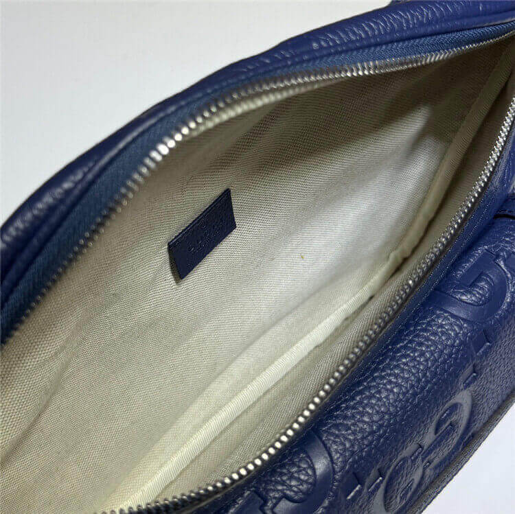 1:1 Mirror QualityReplica Gucci Jumbo GG Belt BagStyle:645093 AABY7 4236Blue jumbo GG leatherCotton linen liningFront pocket with magnetic closureZip closureAdjustable belt strap11″W x 7″H x 3.1″D