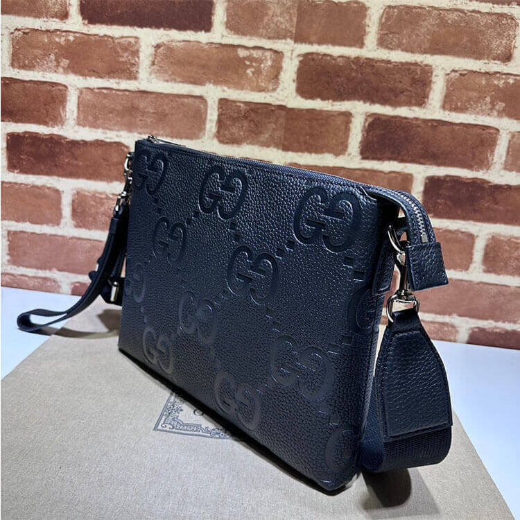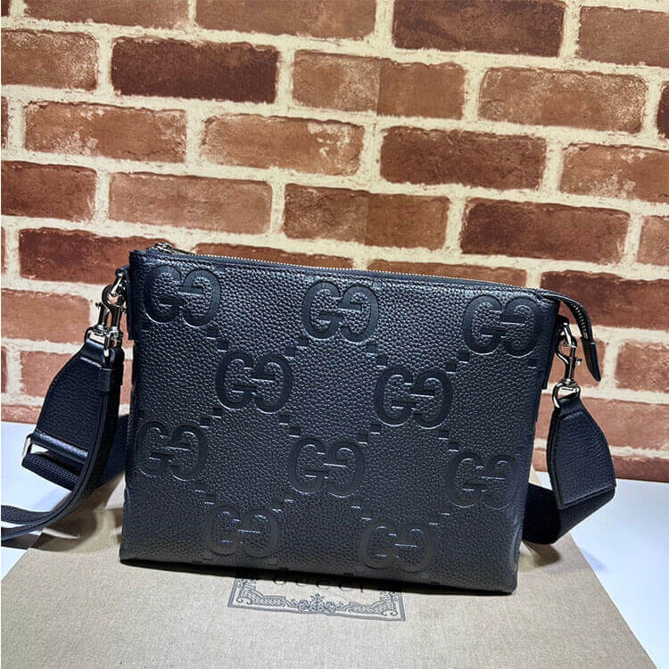 1:1 Mirror QualityReplica Gucci Jumbo GG Medium Messenger BagStyle:696009 AABY7 1000Black jumbo GG leatherCotton linen liningInside: 1 zip pocketShoulder strap with 22.4″ dropZip closure12.2″W x 9.6″H x 2″D