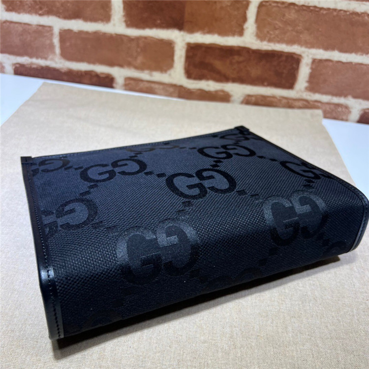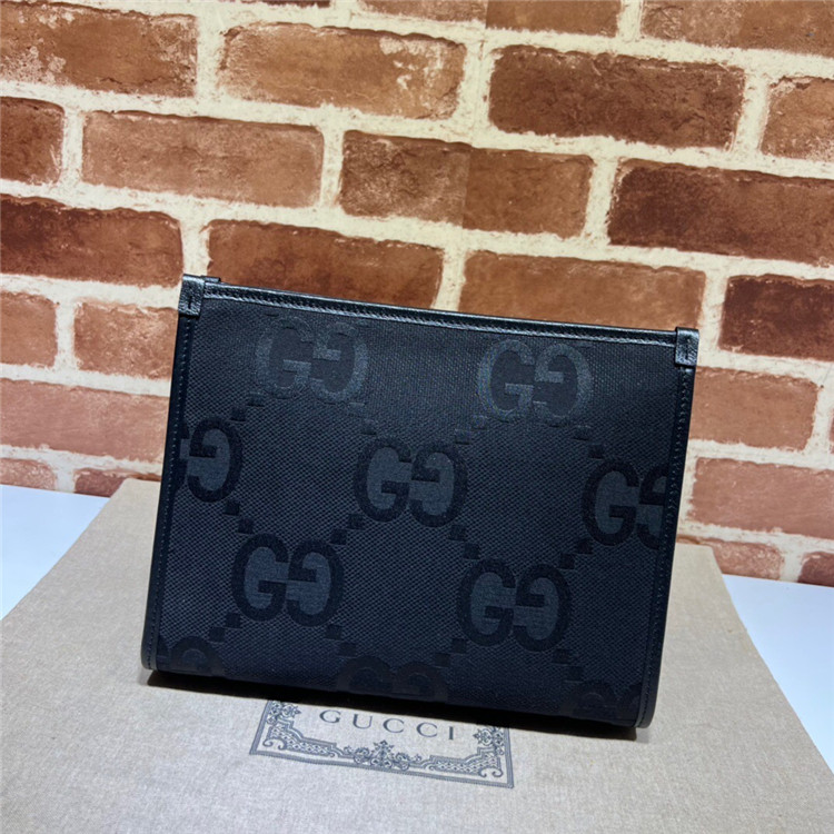 1:1 Mirror QualityReplica Gucci Jumbo GG PouchStyle:699318 FABGN 1000Black jumbo GG canvasBlack leather trimMoire liningInside: 1 pocketZip closure10.2″W x 7.9″H x 2.4″D