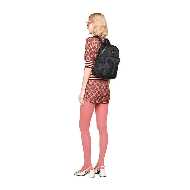 1:1 Mirror Quality Replica Gucci Off The Grid Backpack Style:644992 H9HON 1000 Black GG nylon Black ribbon trim, leather details and pallidum-toned hardware Interior: 2 zip pockets 4″ handle drop Weight: 1.8lbs 11.8″W x 14.4″H x 4″D The model is 5’8″ cm tall