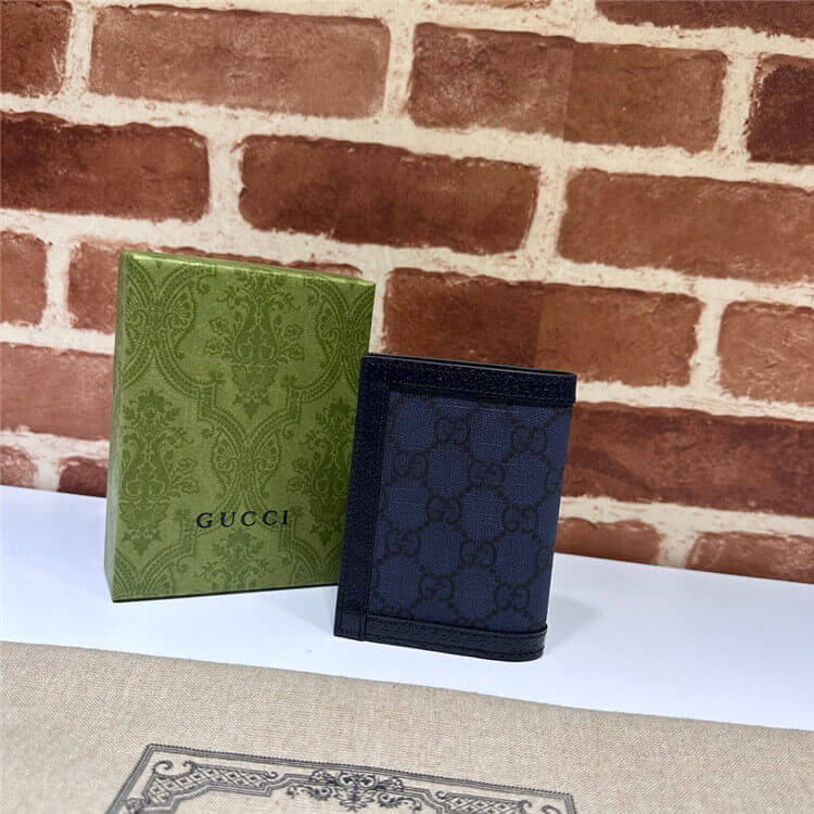 1:1 Mirror Quality Replica Gucci Ophidia GG Card Case Style:760215 UULBN 4055 Blue and dark blue GG Supreme canvas Dark blue leather trim Palladium-toned hardware Moiré lining Double G Inside: 6 card slots and 1 bill pocket Open: 7″W x 4.5″H Closed: 3.5″W x 4.5″H x 0.7″D