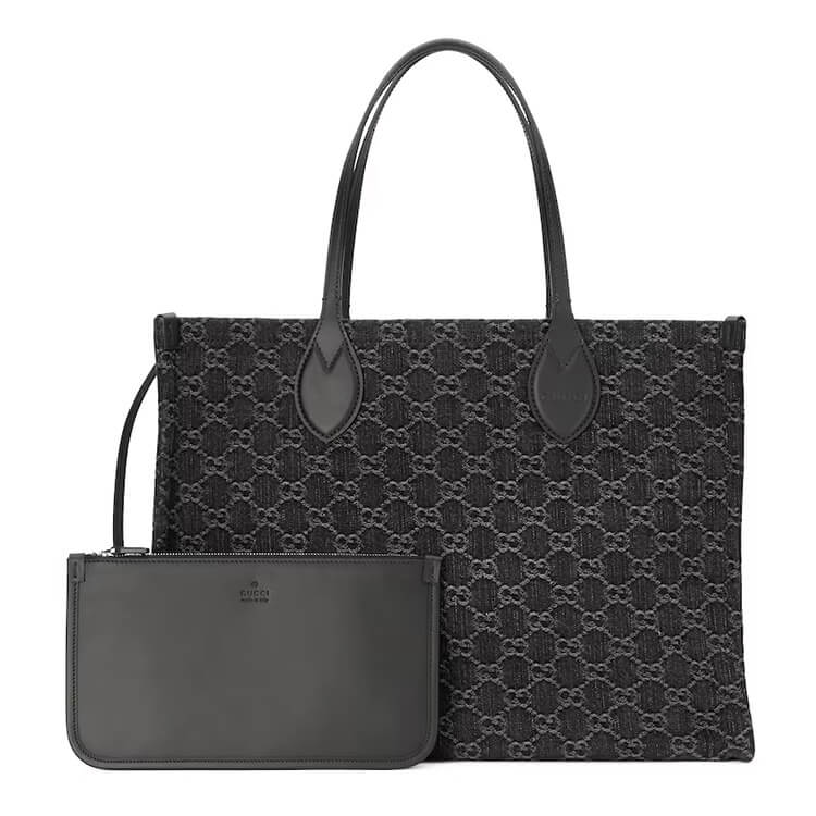 1:1 Mirror QualityReplica Gucci Ophidia GG Large Tote BagStyle:772184 FAC2F 8450Black and grey GG denimBlack leather trimHandle drop: 20cmLarge size: W41cm x H30cm x D18cmFits up to: iPhone Pro Max/Plus, Airpods, long wallet, and lipstick