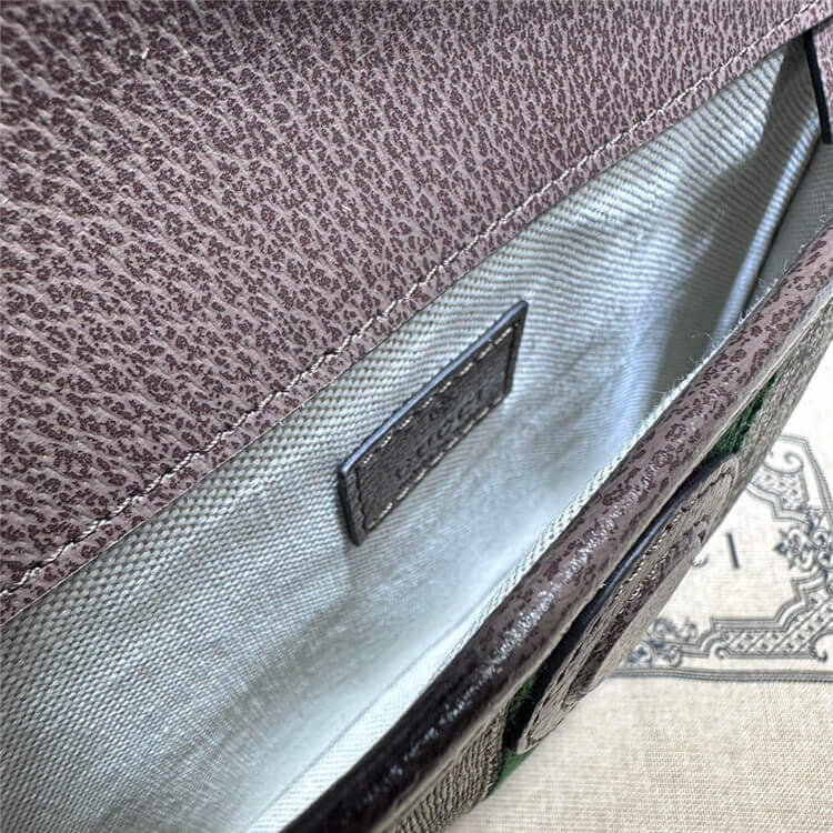 1:1 Mirror Quality Replica Gucci Ophidia GG Small Belt Bag Style:752597 FACFW 8920 Beige and ebony GG Supreme canvas Brown leather trim Gold-toned hardware Green and red Web Cotton linen lining Double G Adjustable waist belt with 20.5″ drop and 31.9″ Flap and magnetic snap closure 9.4″W x 6.7″H x 1.4″D