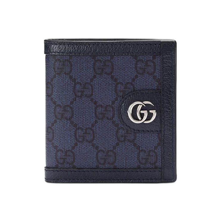 1:1 Mirror Quality Replica Gucci Ophidia GG Wallet Style:732016 UULBN 4055 Blue and dark blue GG Supreme canvas Dark blue leather trim Palladium-toned hardware Moiré lining Double G Inside: 8 card slots, 1 bill compartment Closed: 4″W x 4″H Open: 7.9″W x 4″H