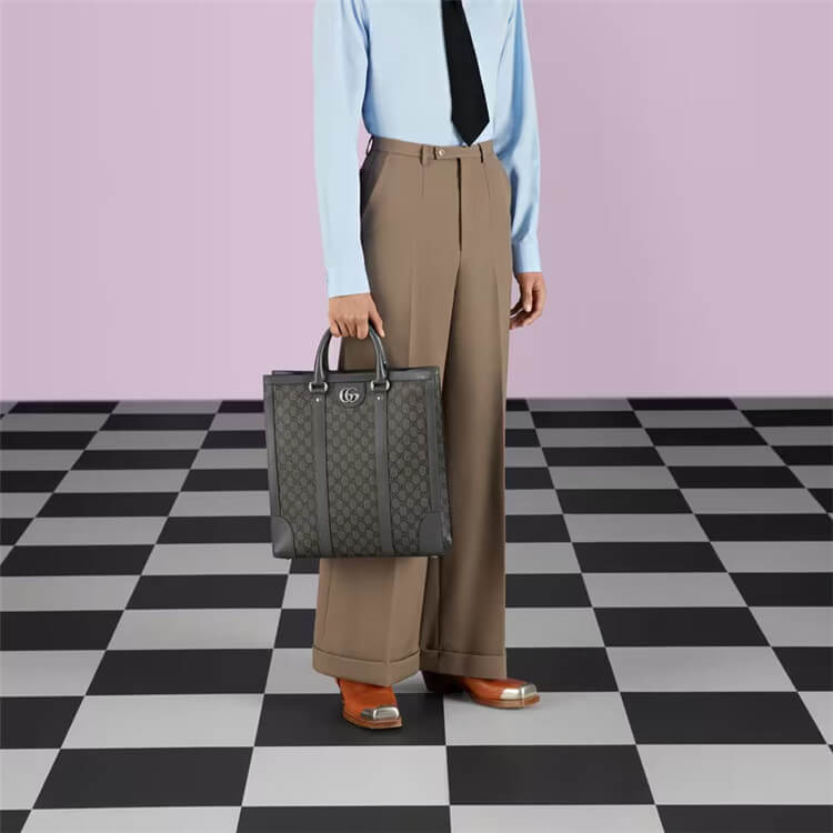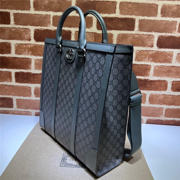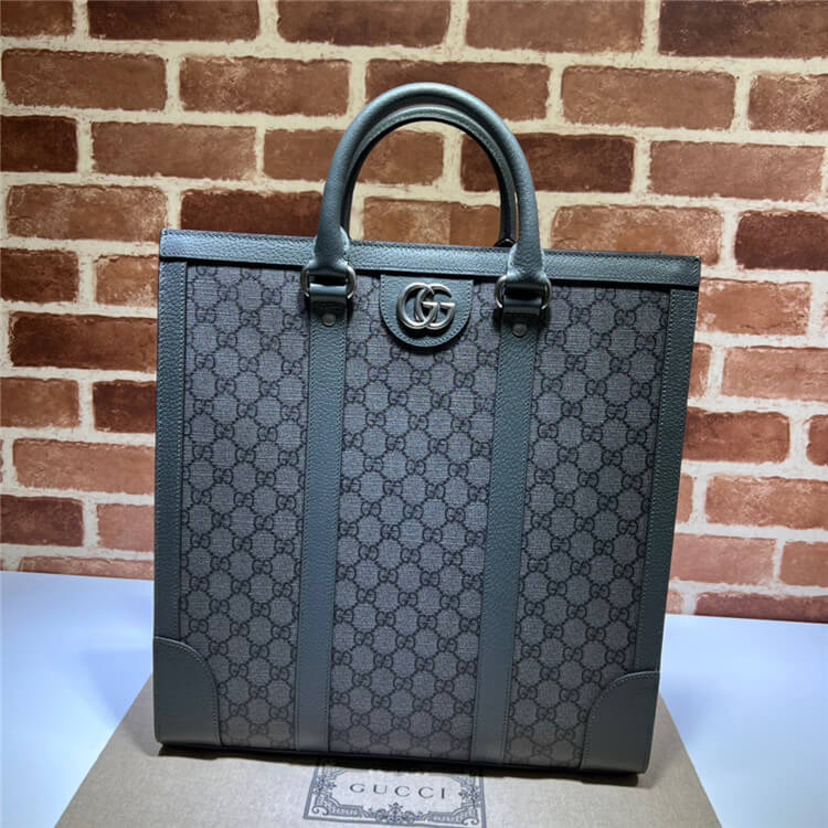 1:1 Mirror Quality Replica Gucci Ophidia Medium Tote Bag Style:731793 UULHK 8576 Grey and black GG Supreme canvas Grey leather trim Palladium-toned hardware Cotton linen lining Double G Top handle with 5.5″ drop Adjustable canvas shoulder strap with 19.7″ drop 14.2″W x 15.3″H x 4.7″D