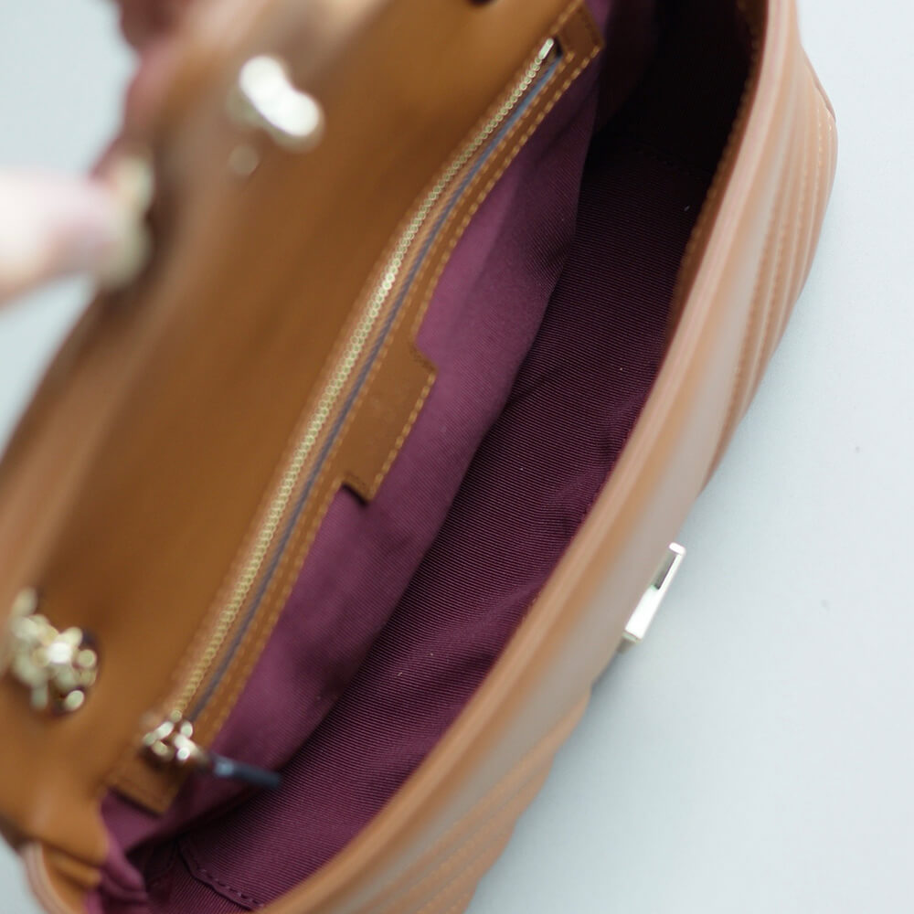 Sliding chain strap can be worn as a shoulder strap with 22″ drop