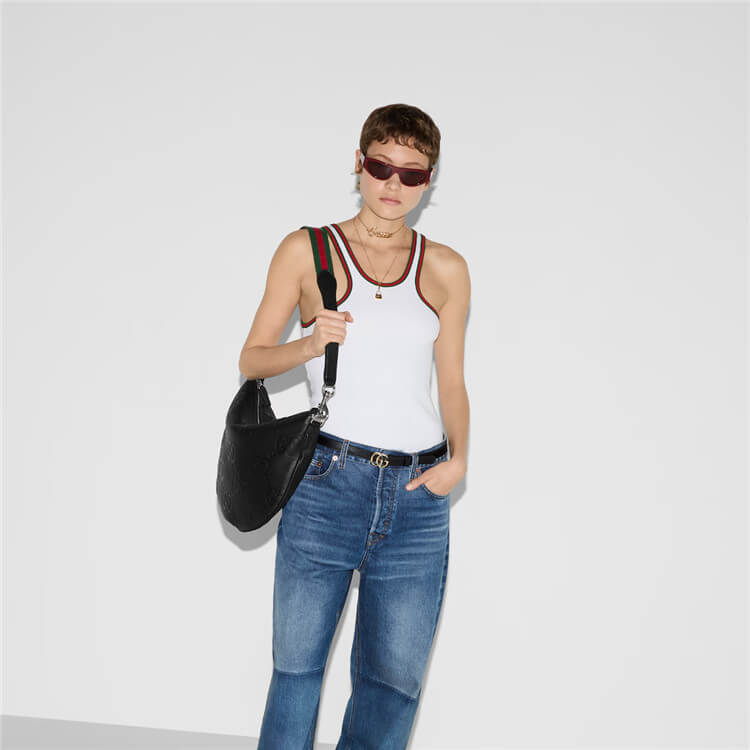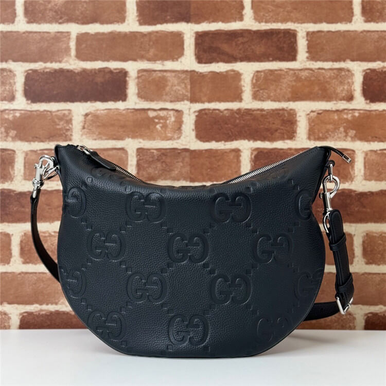 Black jumbo GG grainy leather