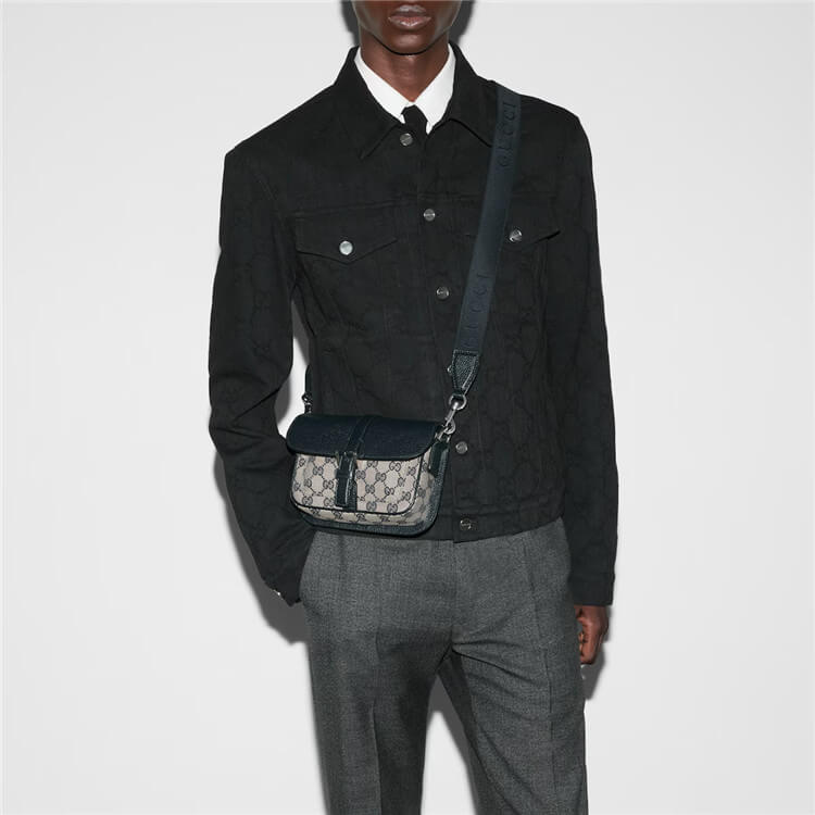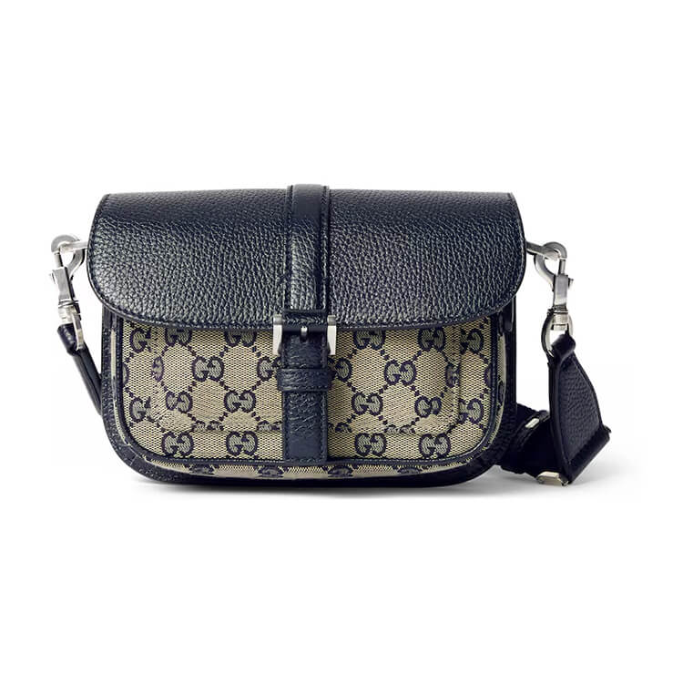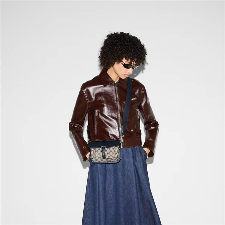Beige and blue GG canvas and leather