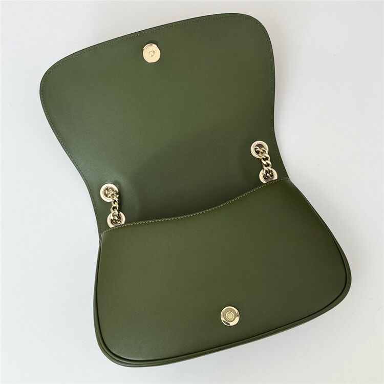Sliding chain strap can be worn as a shoulder strap with 18.8″ drop or can be worn as a top handle with 11.4″ drop.