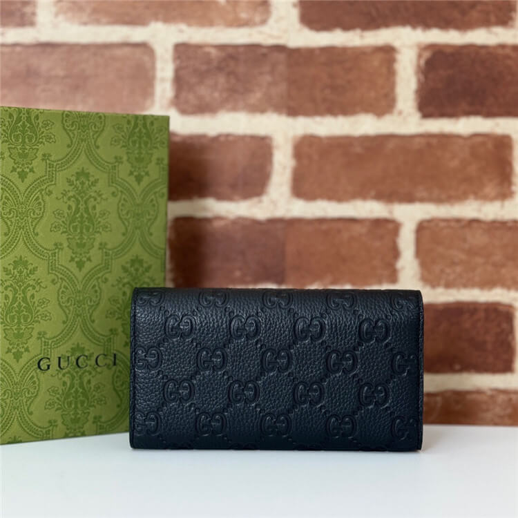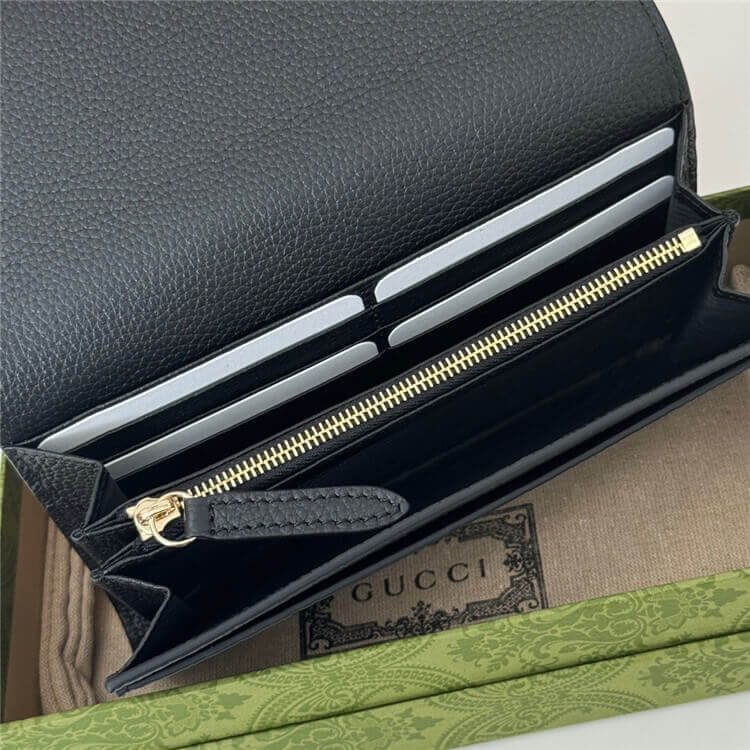 1:1 Mirror QualityReplica Gucci GG Emblem Continental WalletStyle:815922 AAEEM 1000Black GG grainy leatherTaffeta liningInside: 6 card slots, 2 bill compartments,1 open pocket and 1 coin pocketOutside: open pocket near closureSnap button closureW19cm x H11cm x D3cmWeight: 200g approximately