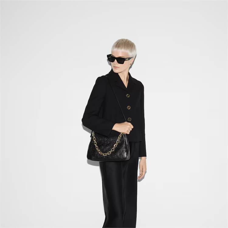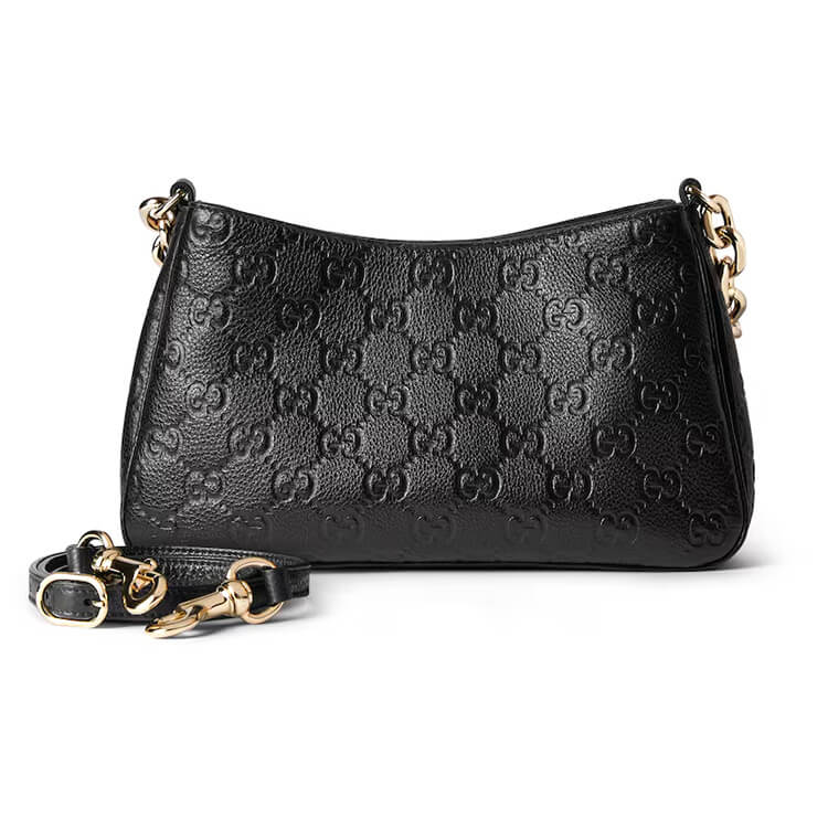 Detachable and adjustable leather shoulder strap with 47.5cm – 53 drop; length: 93-103cm