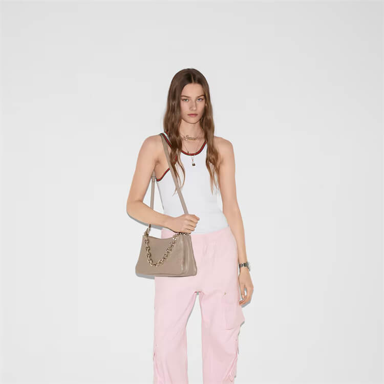 Detachable and adjustable leather shoulder strap with 47.5cm – 53 drop; length: 93-103cm