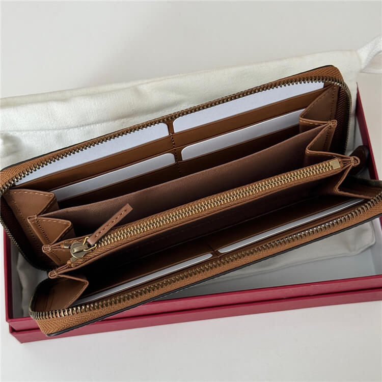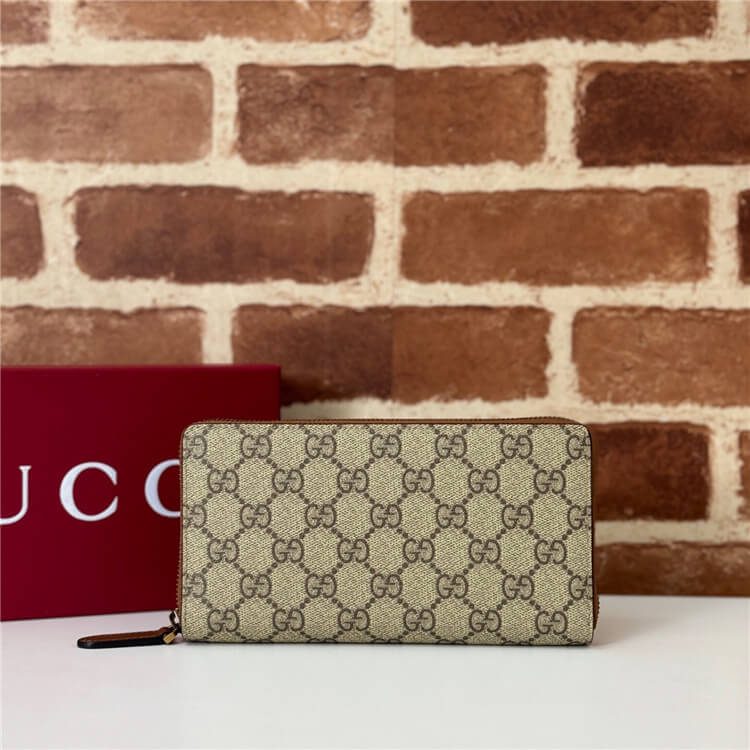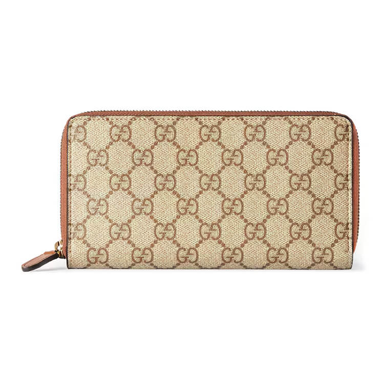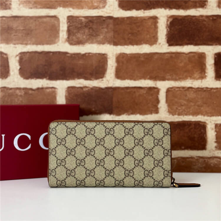 1:1 Mirror Quality Replica Gucci GG Emblem Zip Around Wallet Style:821207 FAED0 9786 Beige and dark brown new GG Monogram coated fabric Brown leather trim Interior: 12 credit card slots, 3 bill compartments and 1 zipper coin pocket Zip closure W19cm x H10.5cm x D2.5cm Weight: 230g approximately