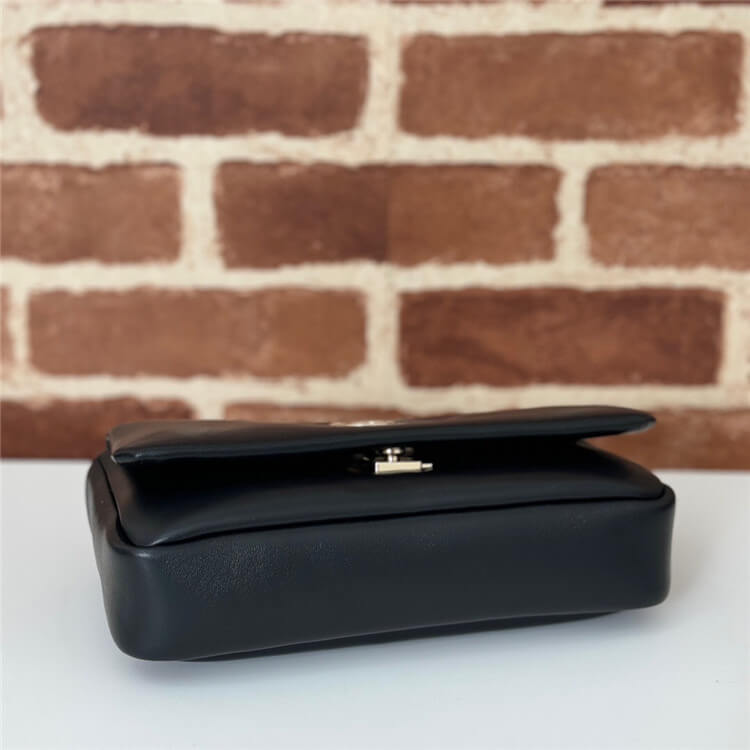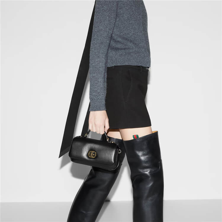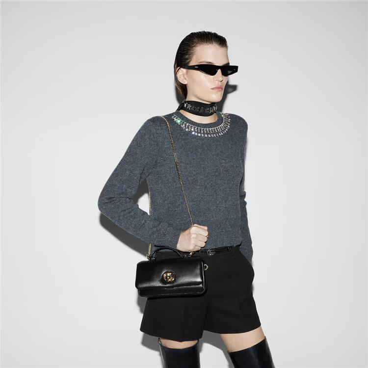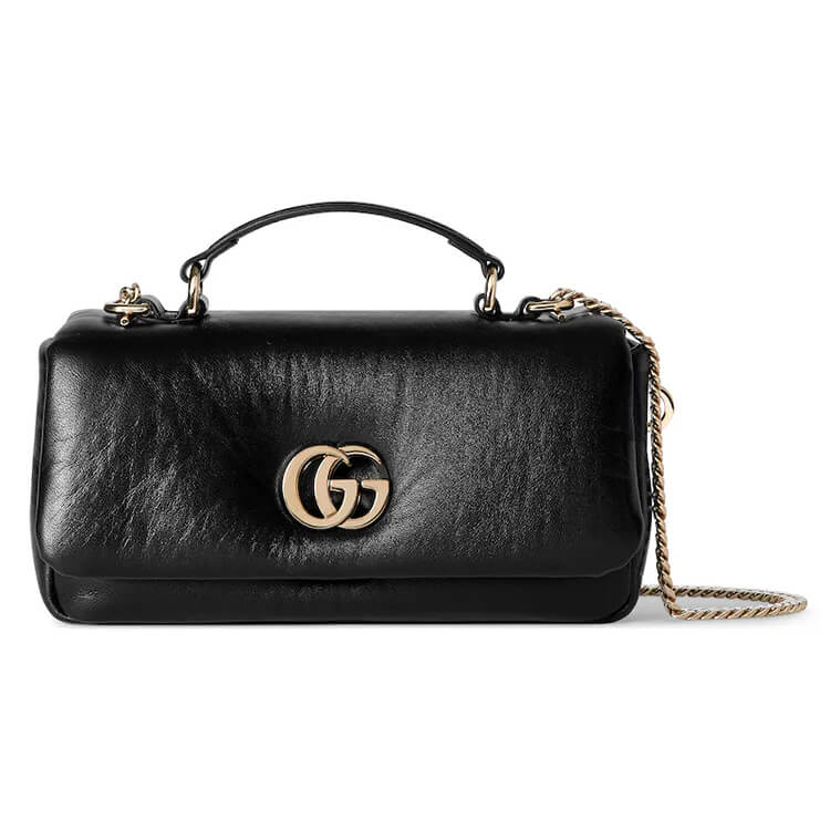 1 zip pocket with GG charm, 1 open pocket and 1 lipstick holder compartment
