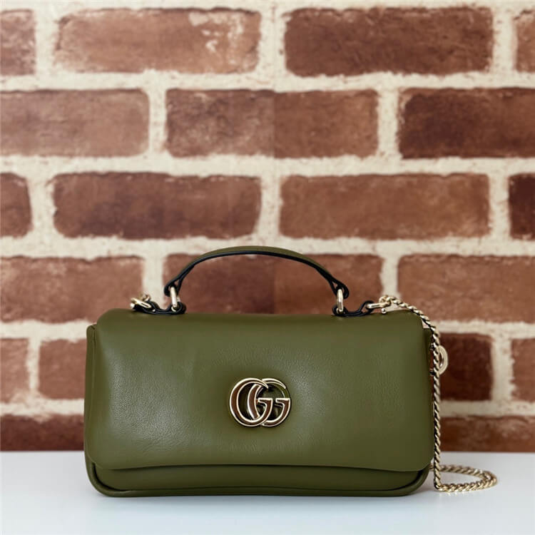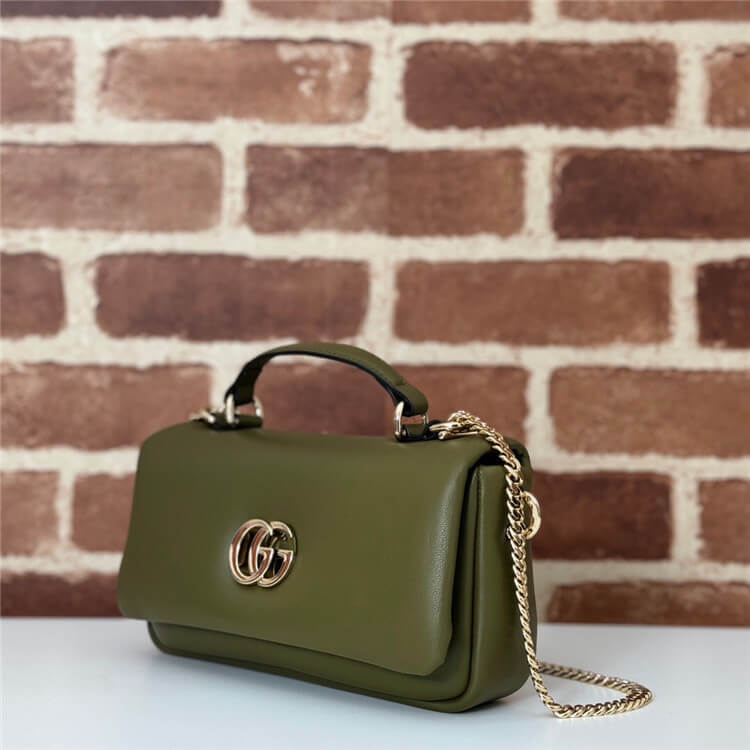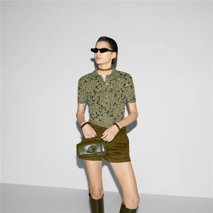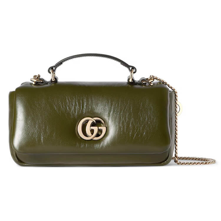 1 zip pocket with GG charm, 1 open pocket and 1 lipstick holder compartment