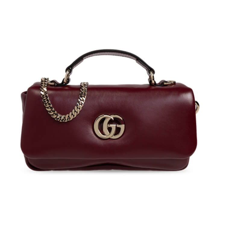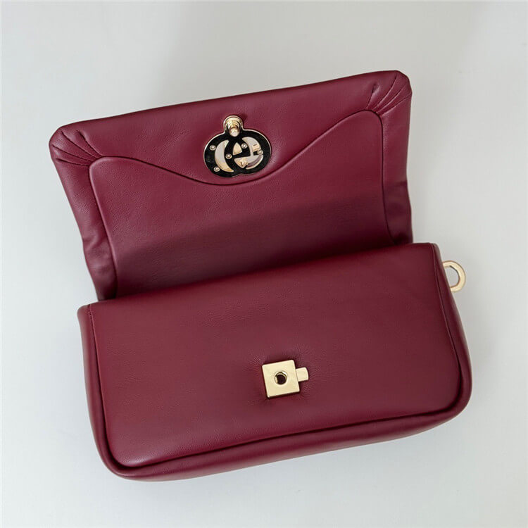 1 zip pocket with GG charm, 1 open pocket and 1 lipstick holder compartment