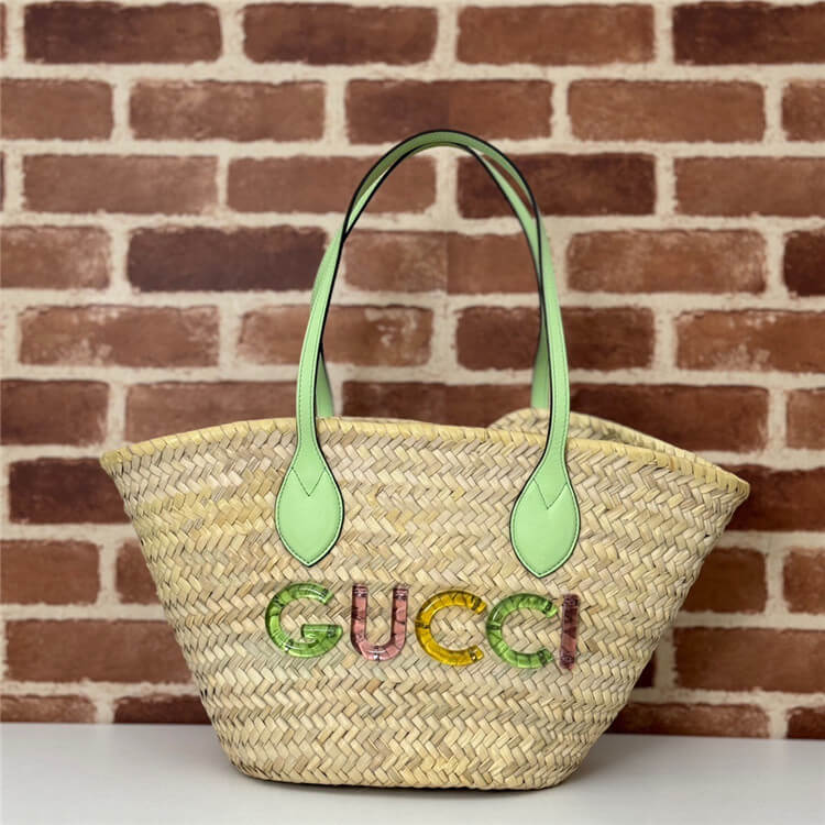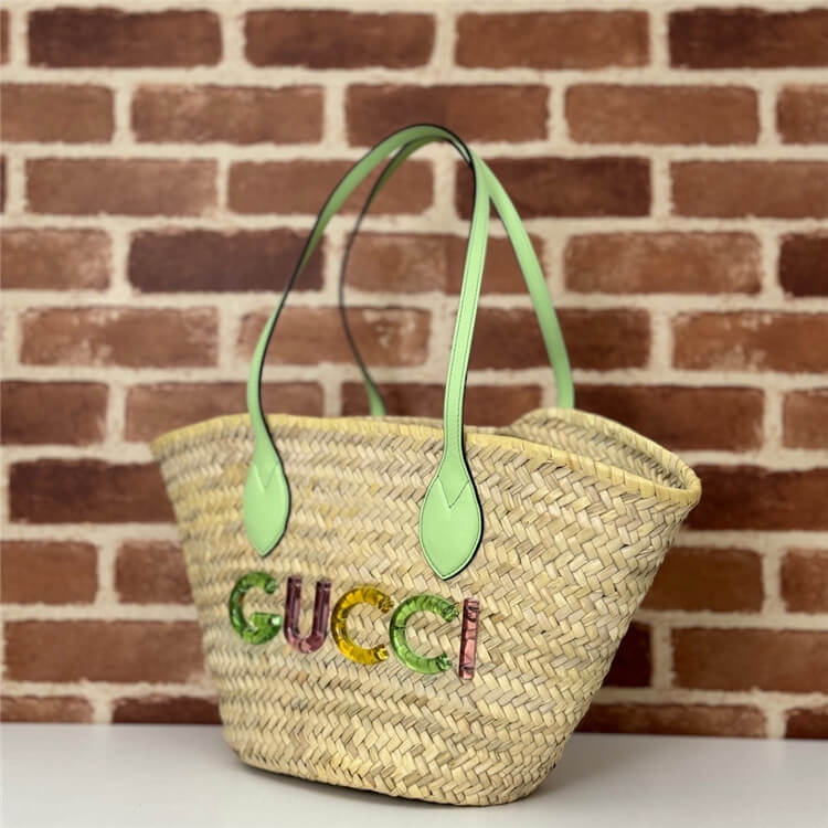 Replica Gucci Small Straw Tote With Gucci Logo