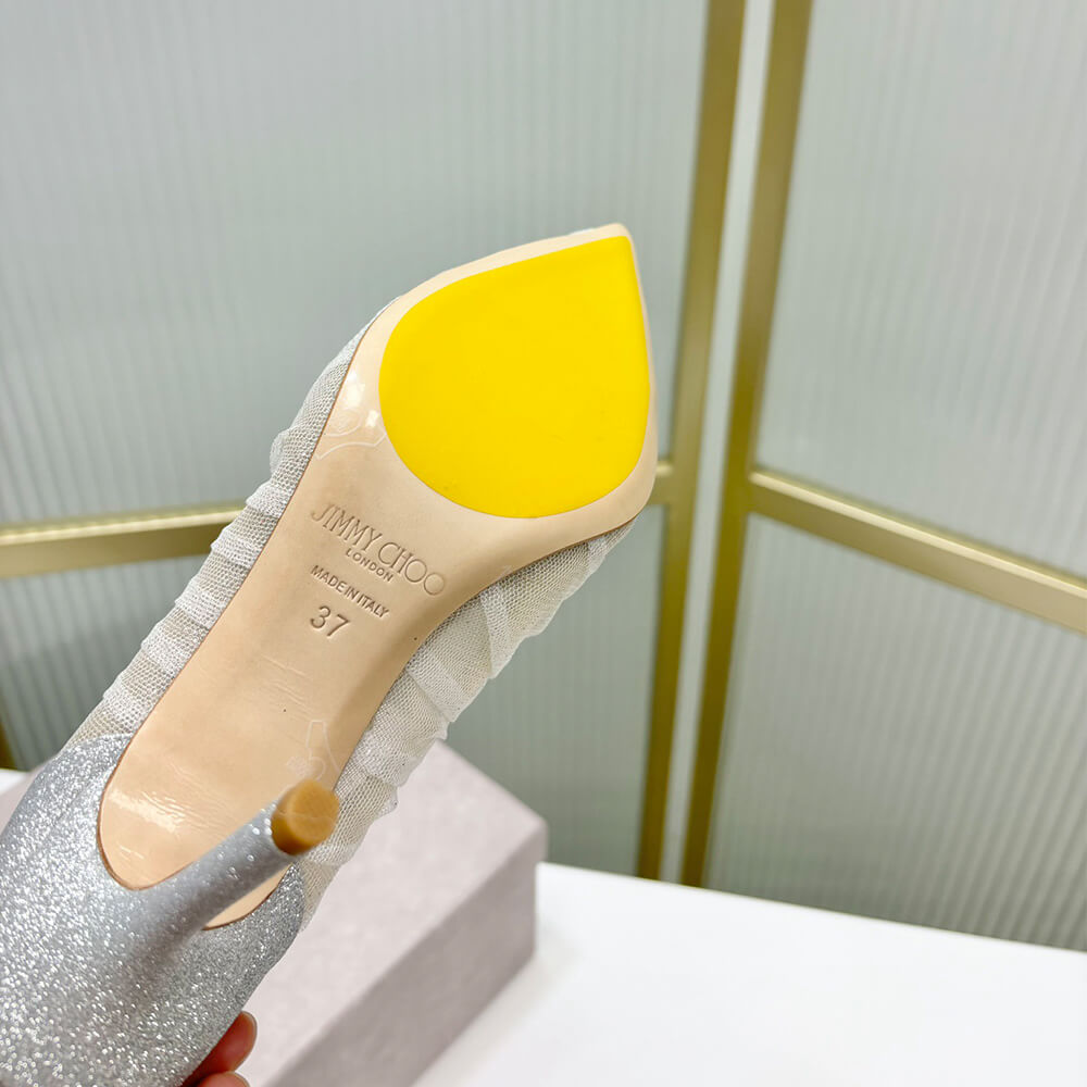 Metallic Silver Glitter Fabric Pumps with Ivory Tulle Overlay