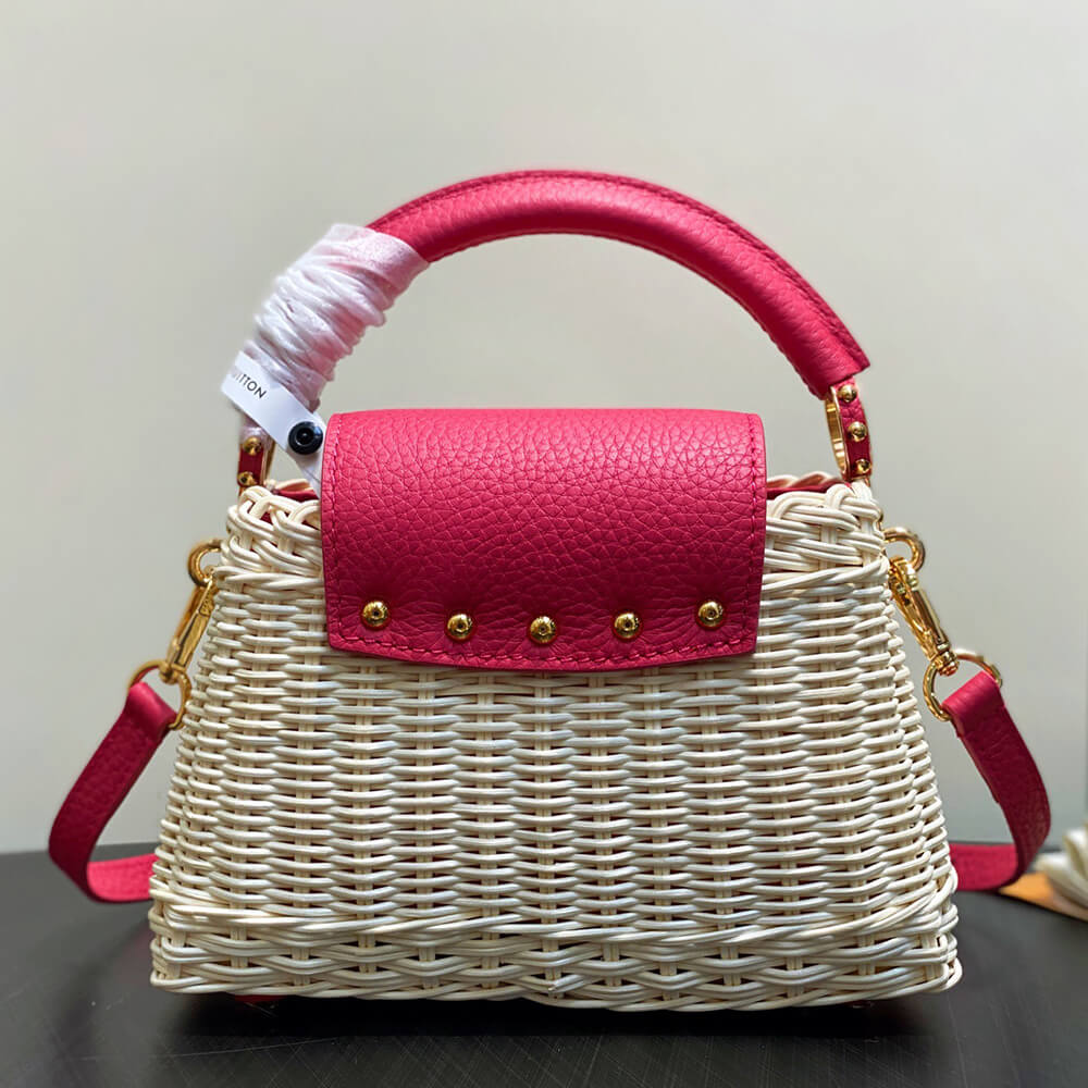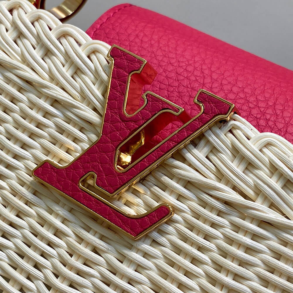 Fits: 6.1-inches smartphone, Capucines compact wallet, keys, lipstick