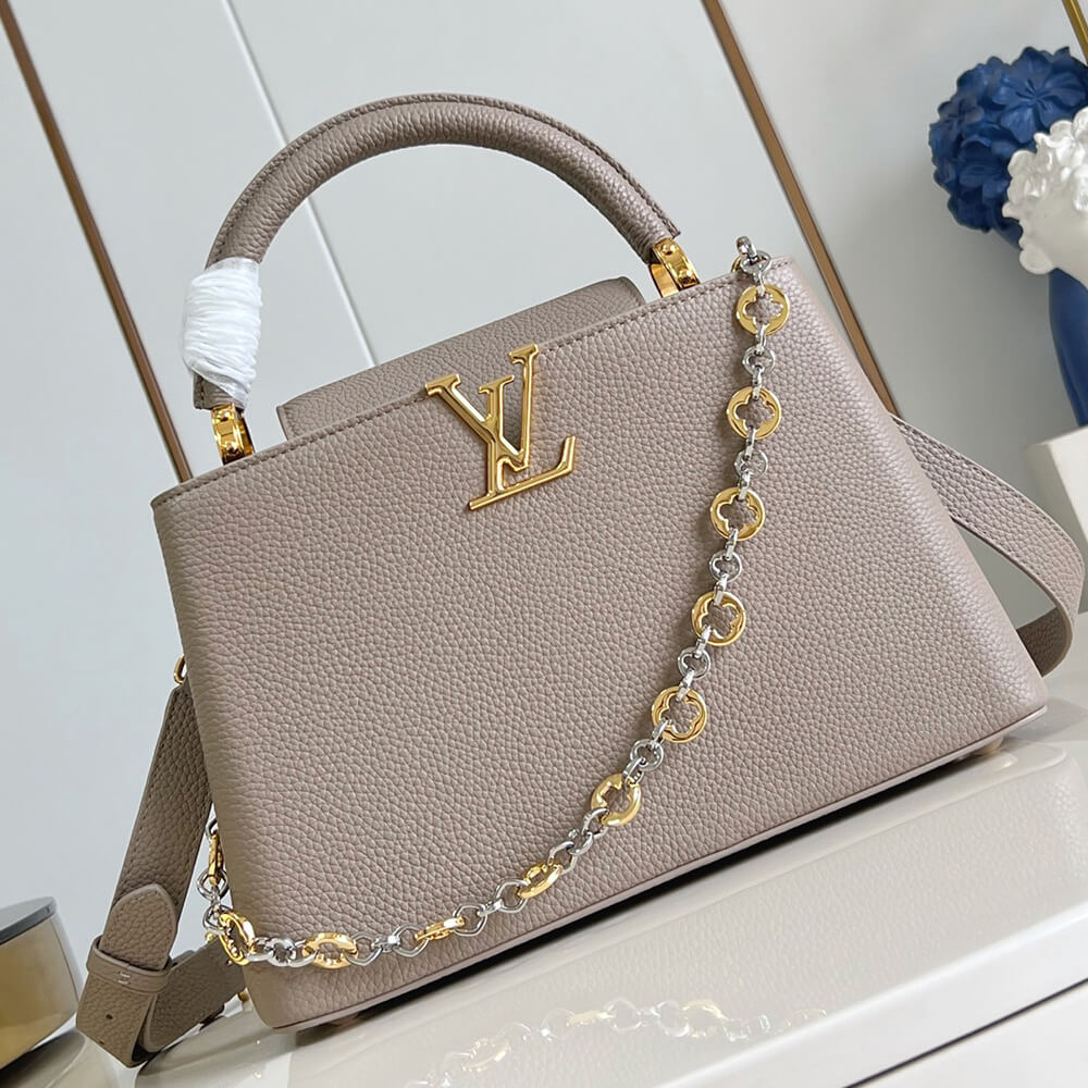 Fits: Two smartphones, LV Vertical Wallet, small make-up bag, earphones, keys