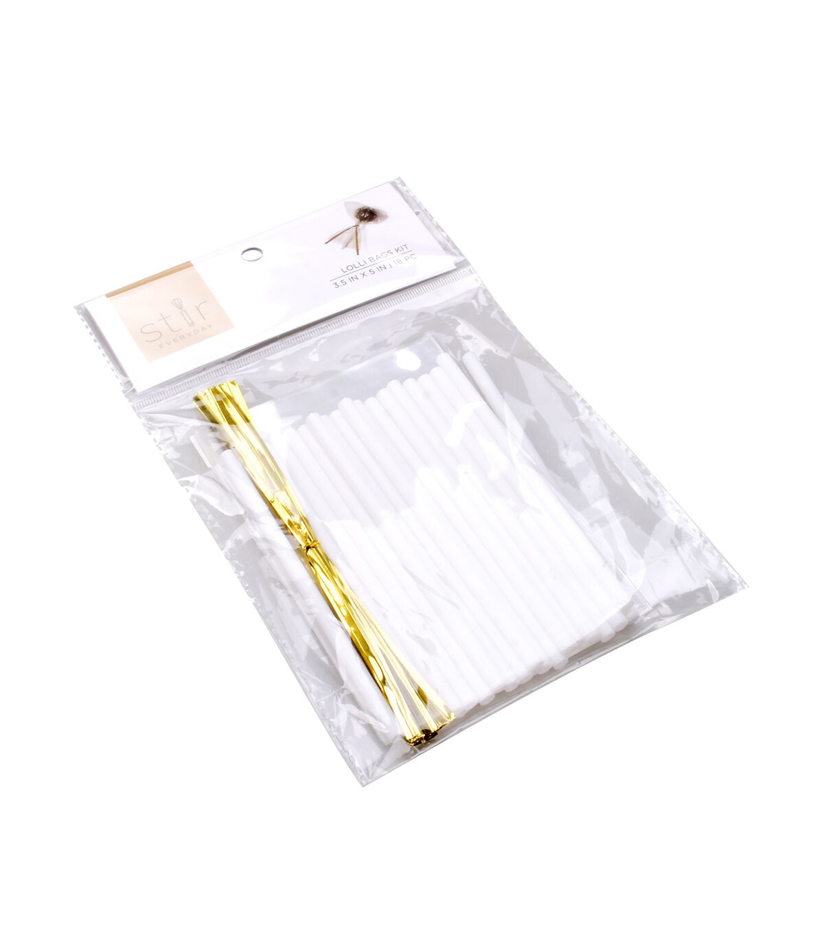 Transform your homemade treats into party favors with this lollipop gifting kit. The set includes lollipop sticks, clear lollipop bags, twist ties, and tags. Use it to create lovely favors that are perfect for birthdays, holiday parties, bake sales, and more!