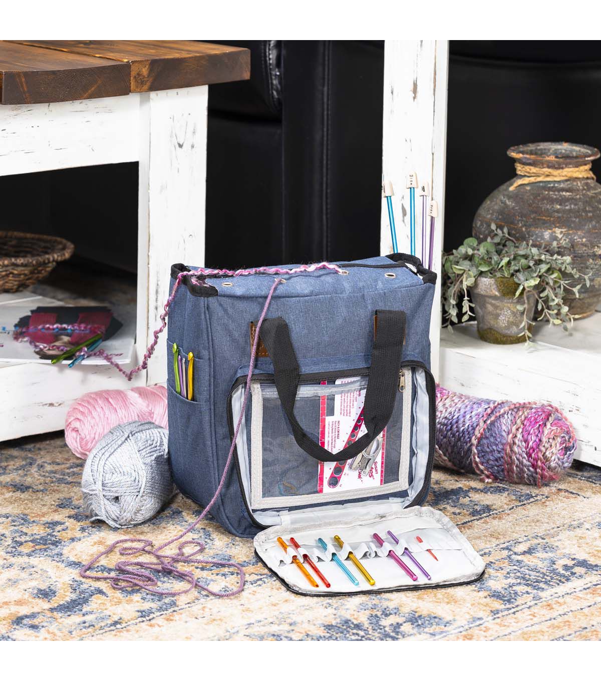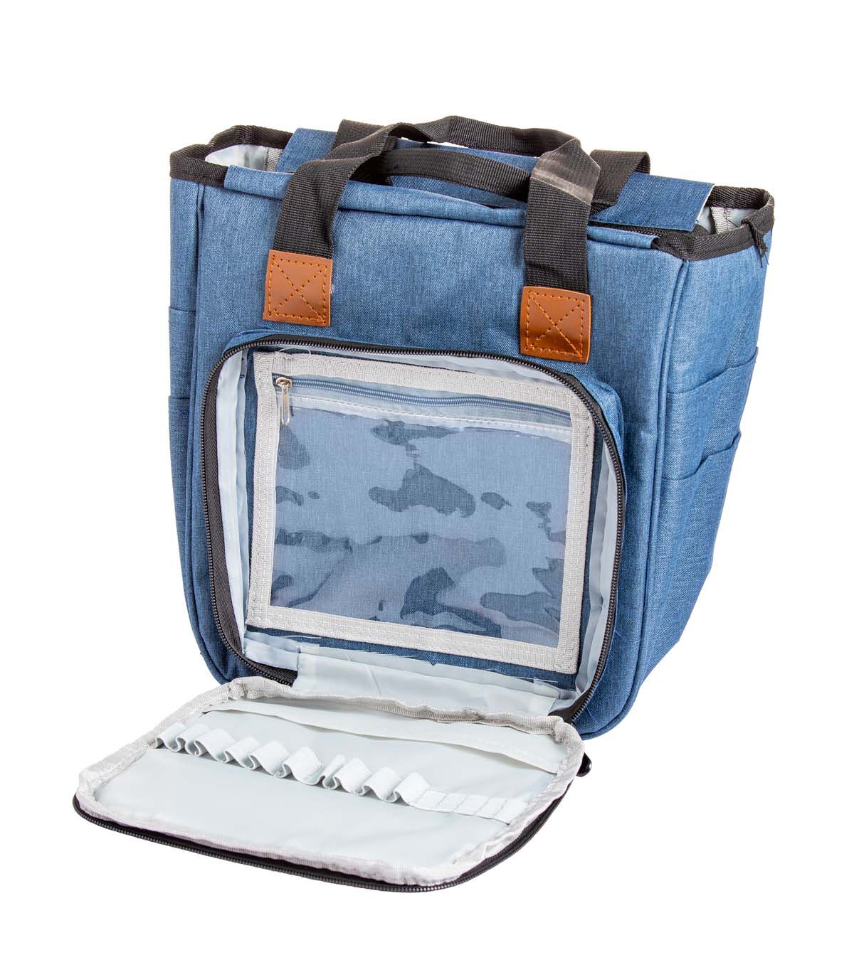 Use the Big Twist All-in-one Vertical Storage Bag - Blue to store your sewing or art and craft supplies. With ample space to accommodate needles, yarn and hooks among others, this storage bag will help save space. Woven from a polyester material, it is sure to last long.