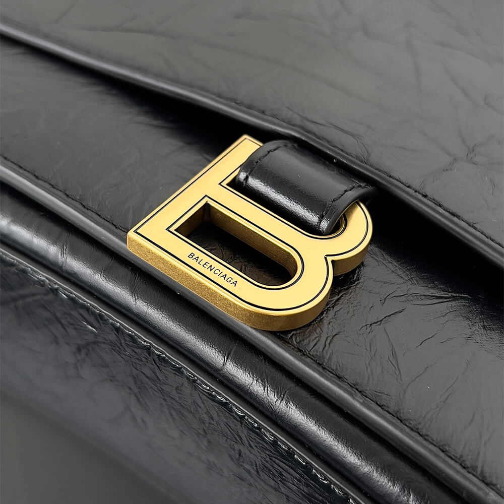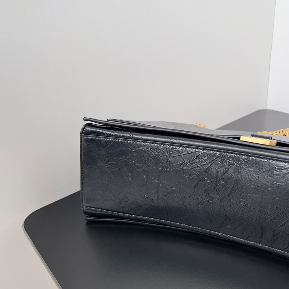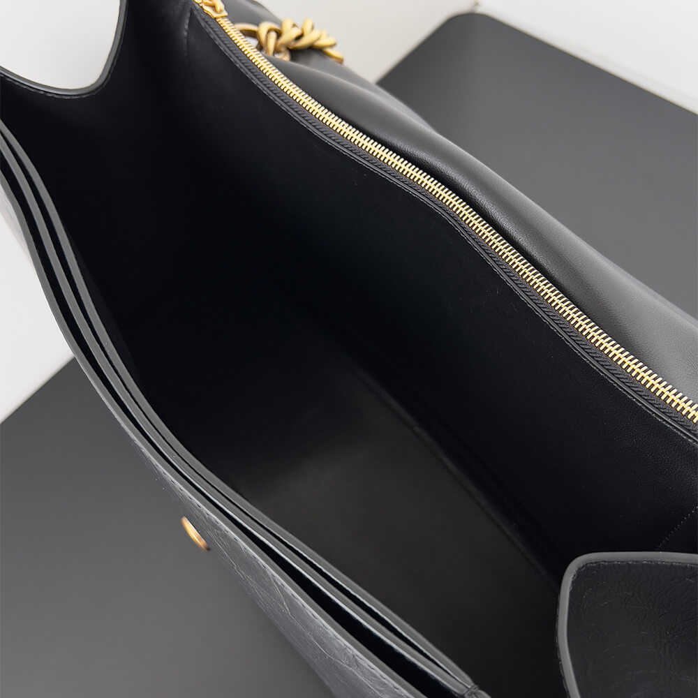 Crush Chain Bag Large in black crushed calfskin with aged-gold hardware