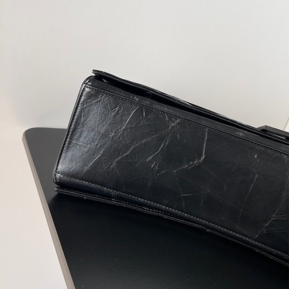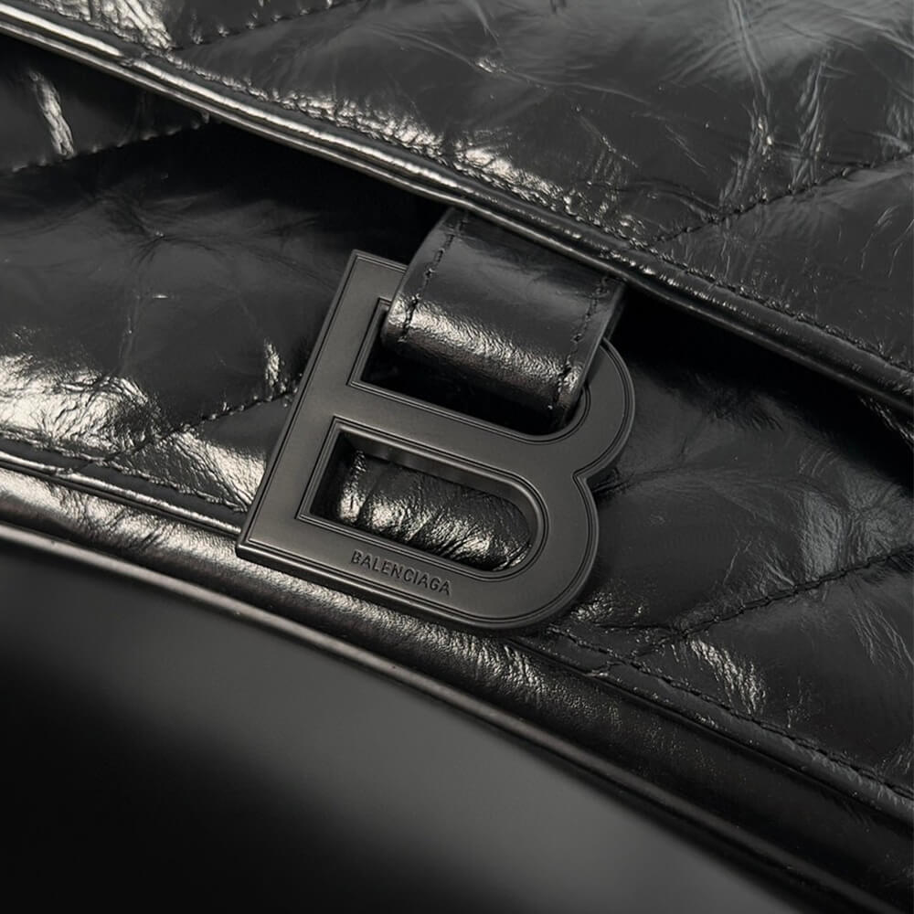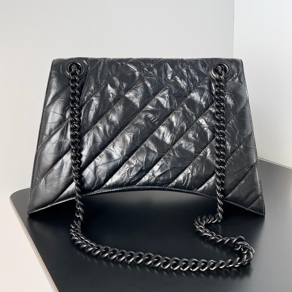 Crush Chain Bag Large in black quilted crushed calfskin with black matte hardware