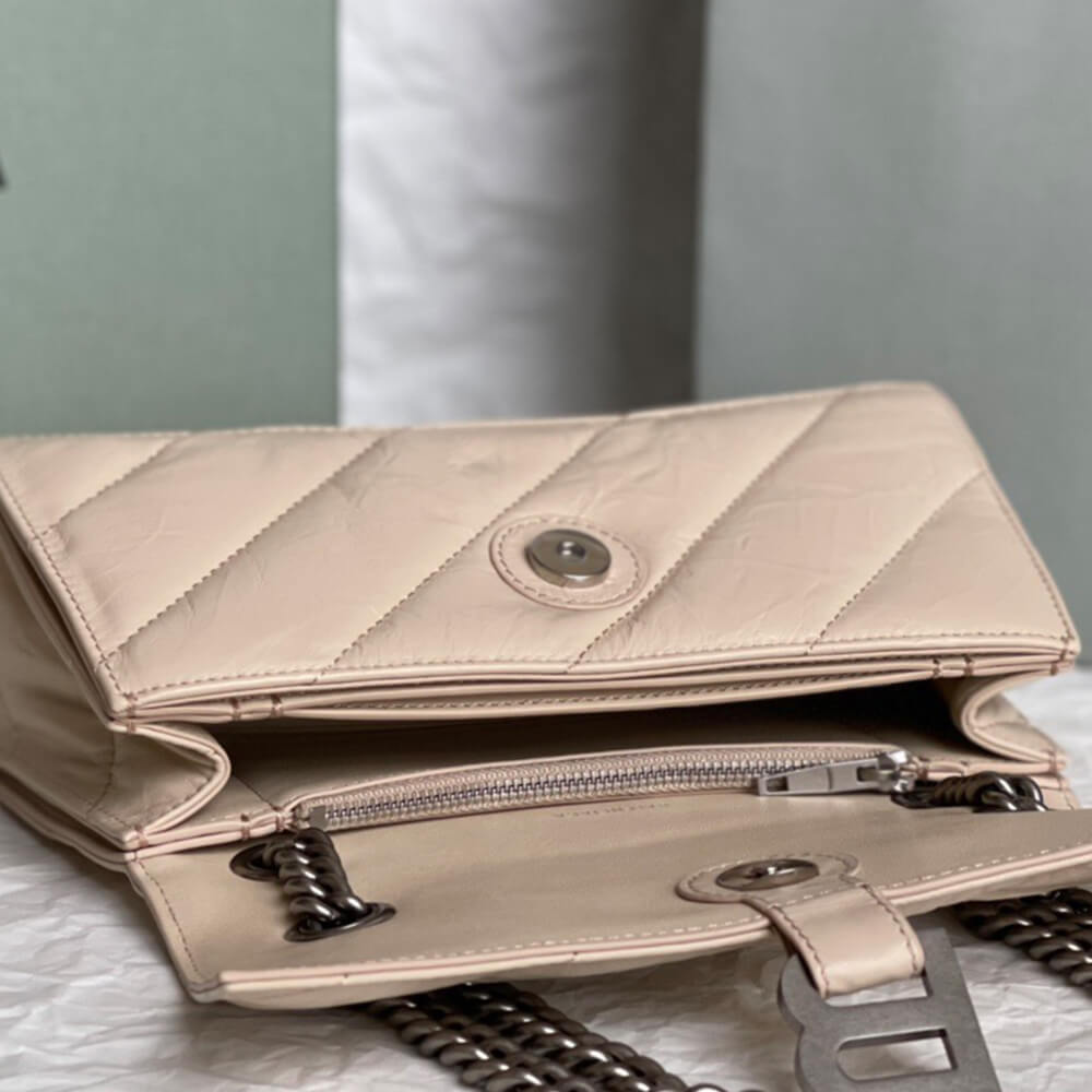 Crush Chain Bag Small in black quilted crushed calfskin, aged silver hardware