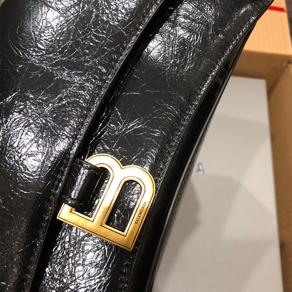 Crush Chain Bag Small in black crushed calfskin, aged-gold hardware