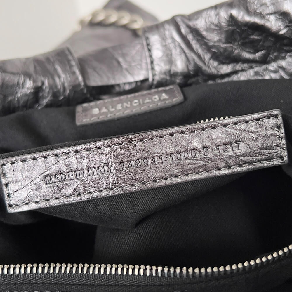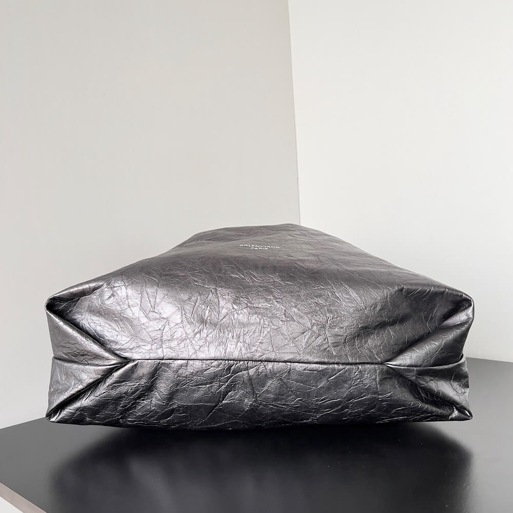 Crush Tote Bag Medium in black crushed calfskin, silver hardware
