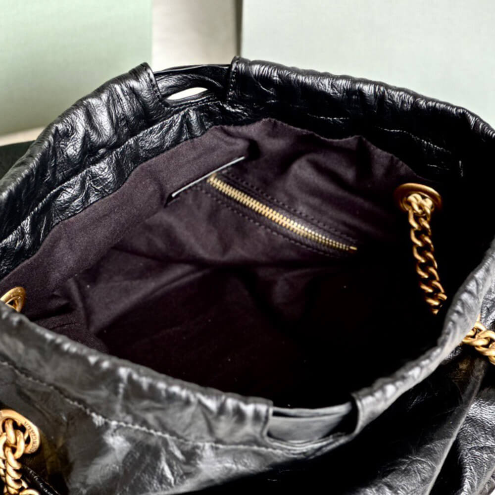 Crush Tote Bag Medium in black crushed calfskin, aged-gold hardware