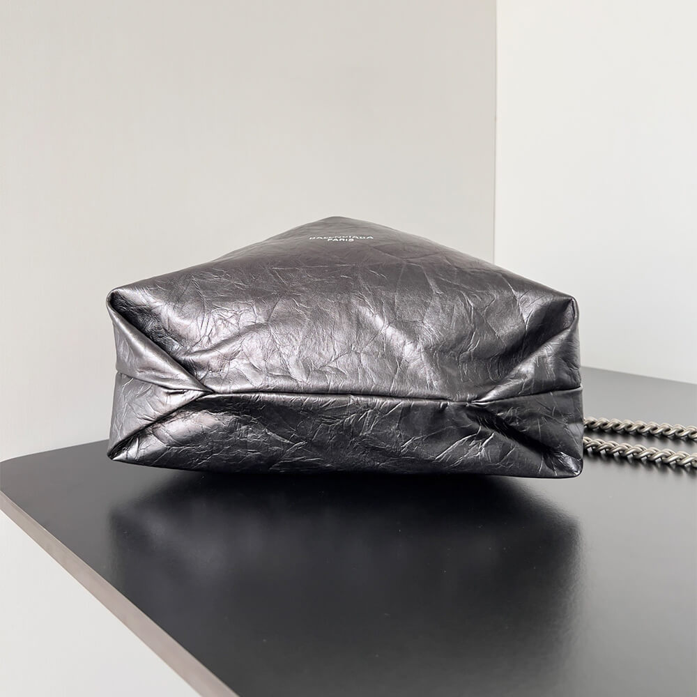 Crush Tote Bag Small in black crushed calfskin, aged-silver hardware
