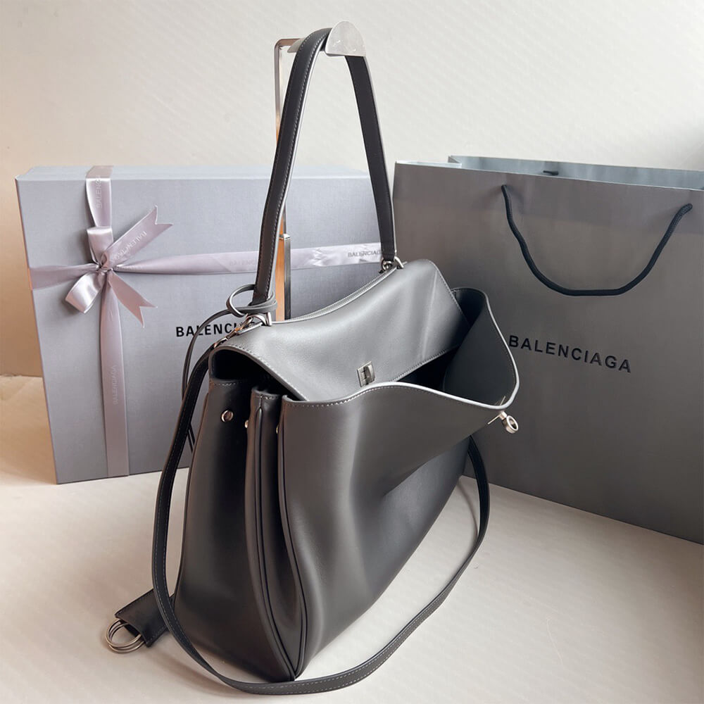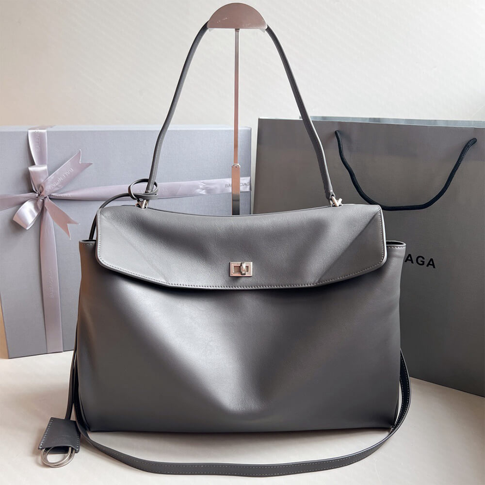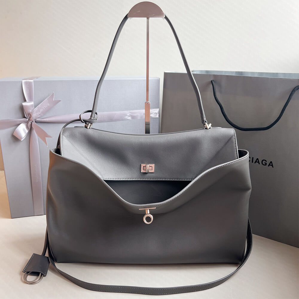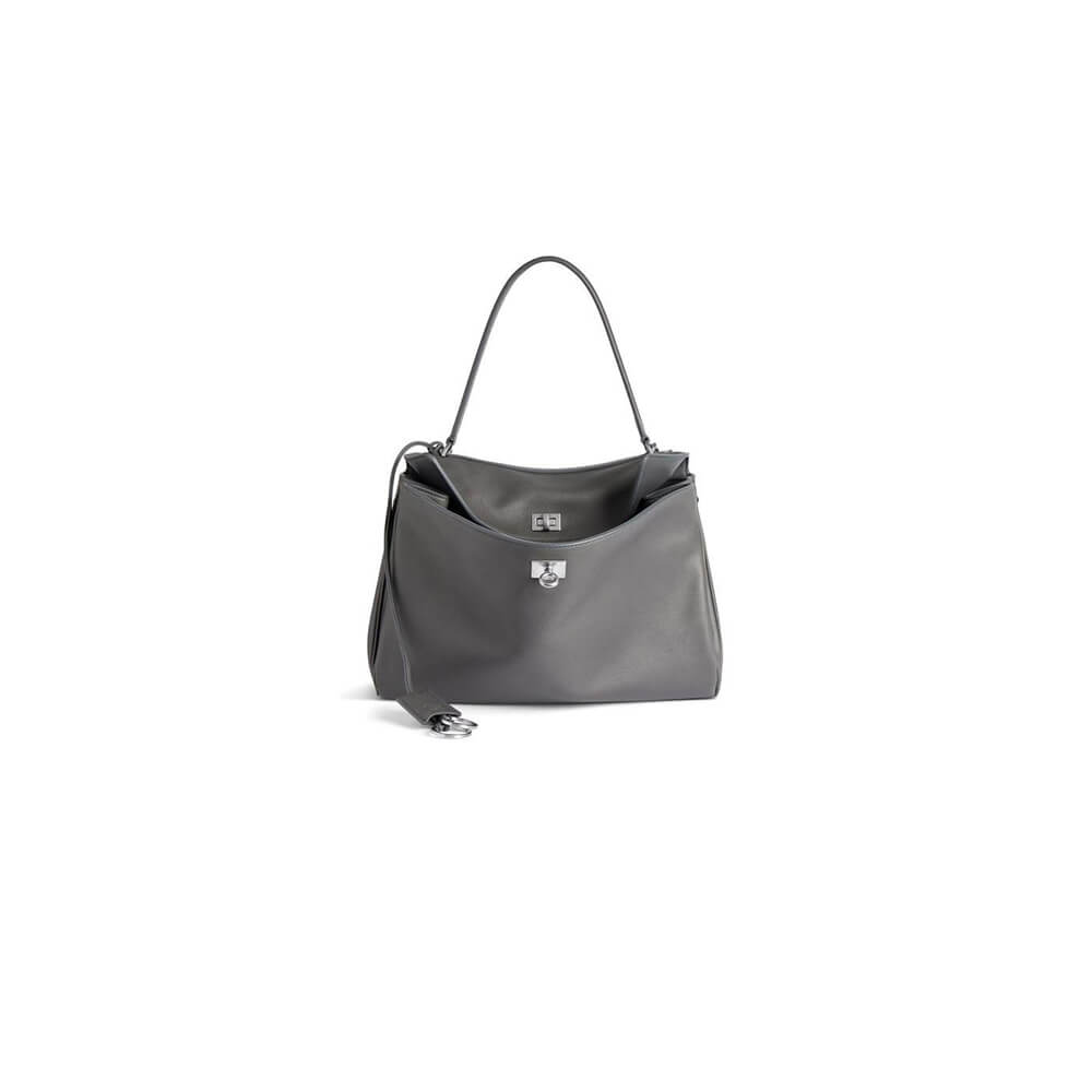 Rodeo Handbag Large in grey smooth calfskin, silver hardware