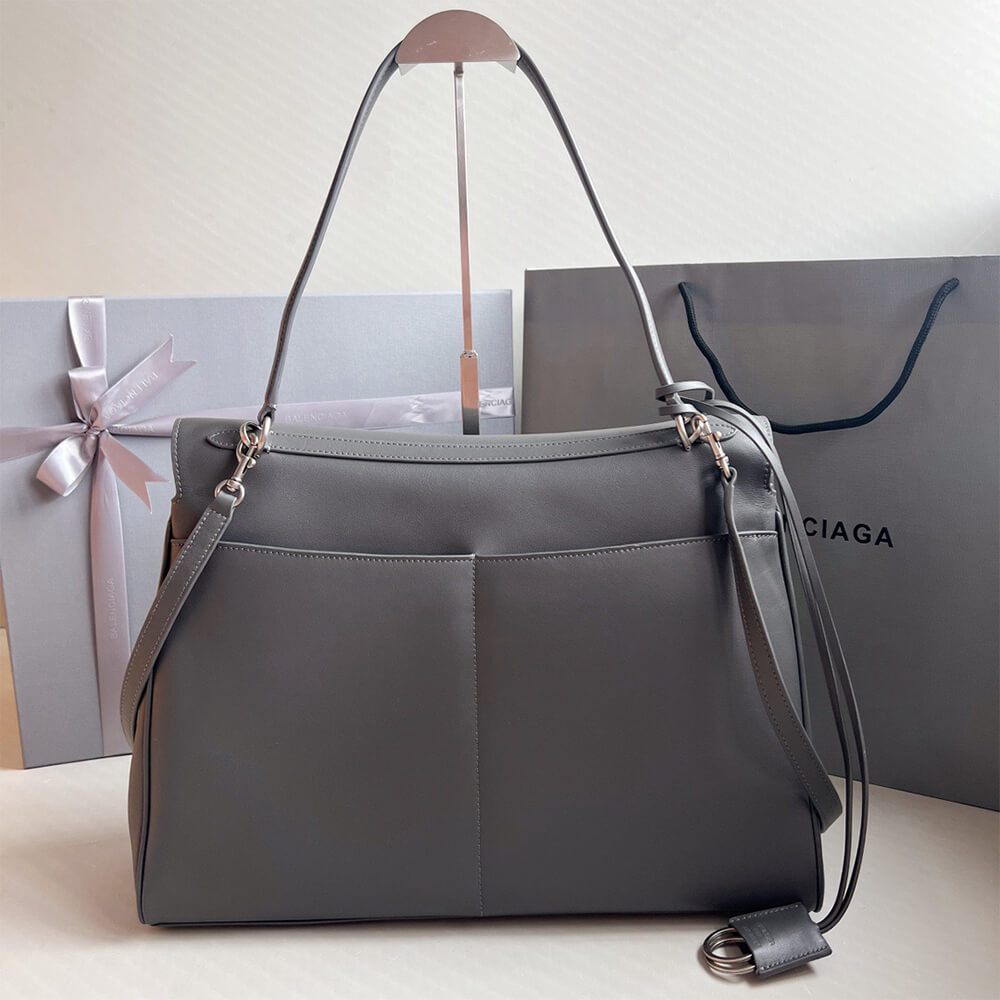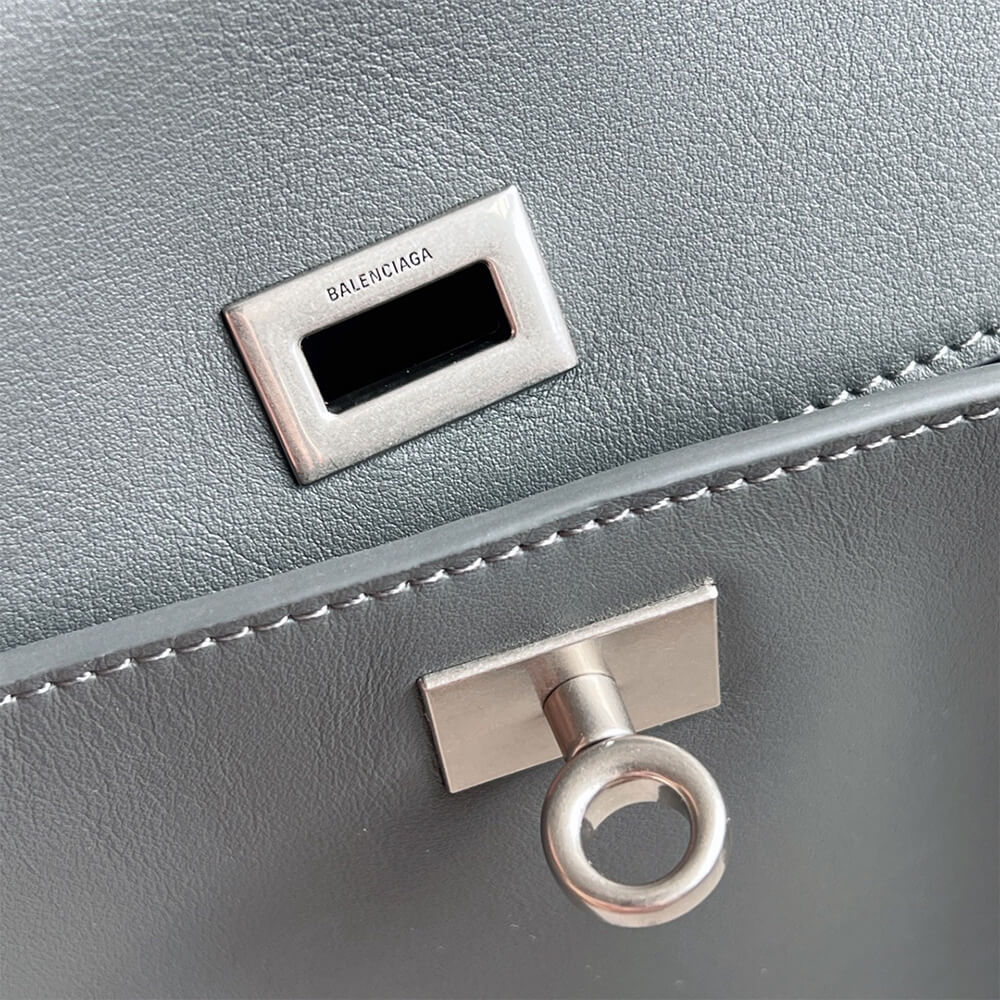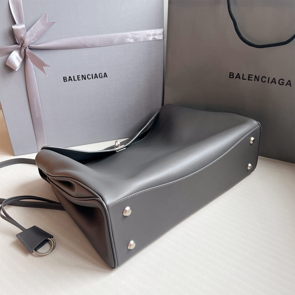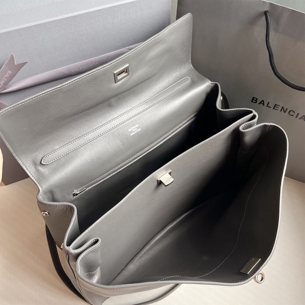 Rodeo Handbag Large in grey smooth calfskin, silver hardware