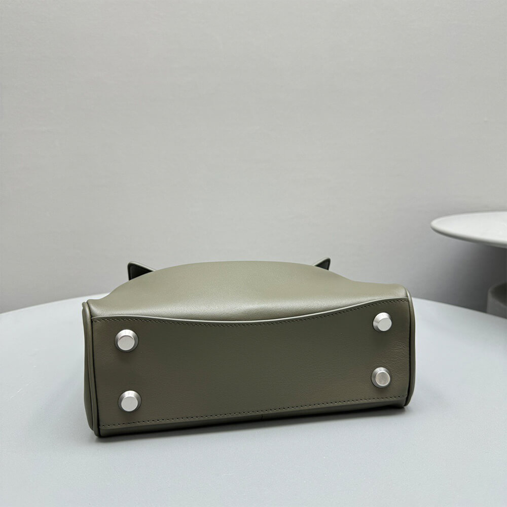 Rodeo Handbag Mini in khaki smooth calfskin, aged-silver hardware