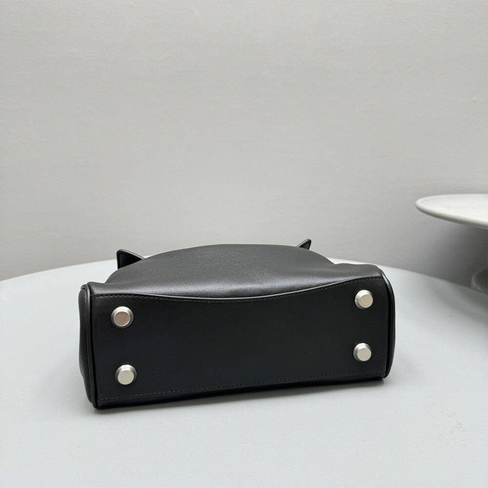 Rodeo Handbag Mini in black smooth calfskin, aged-silver hardware