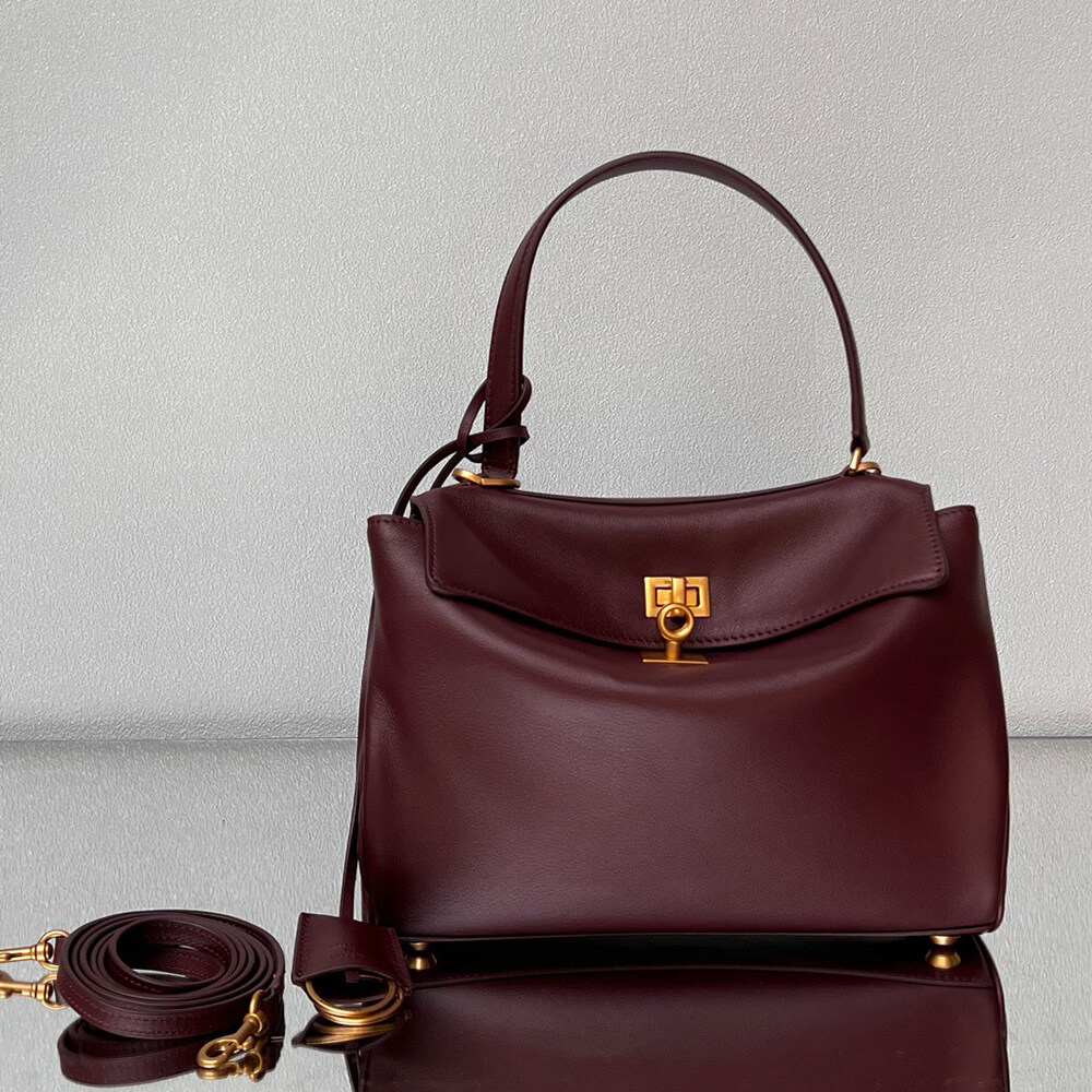 Rodeo Handbag Small in dark burgundy smooth calfskin, aged-gold hardware