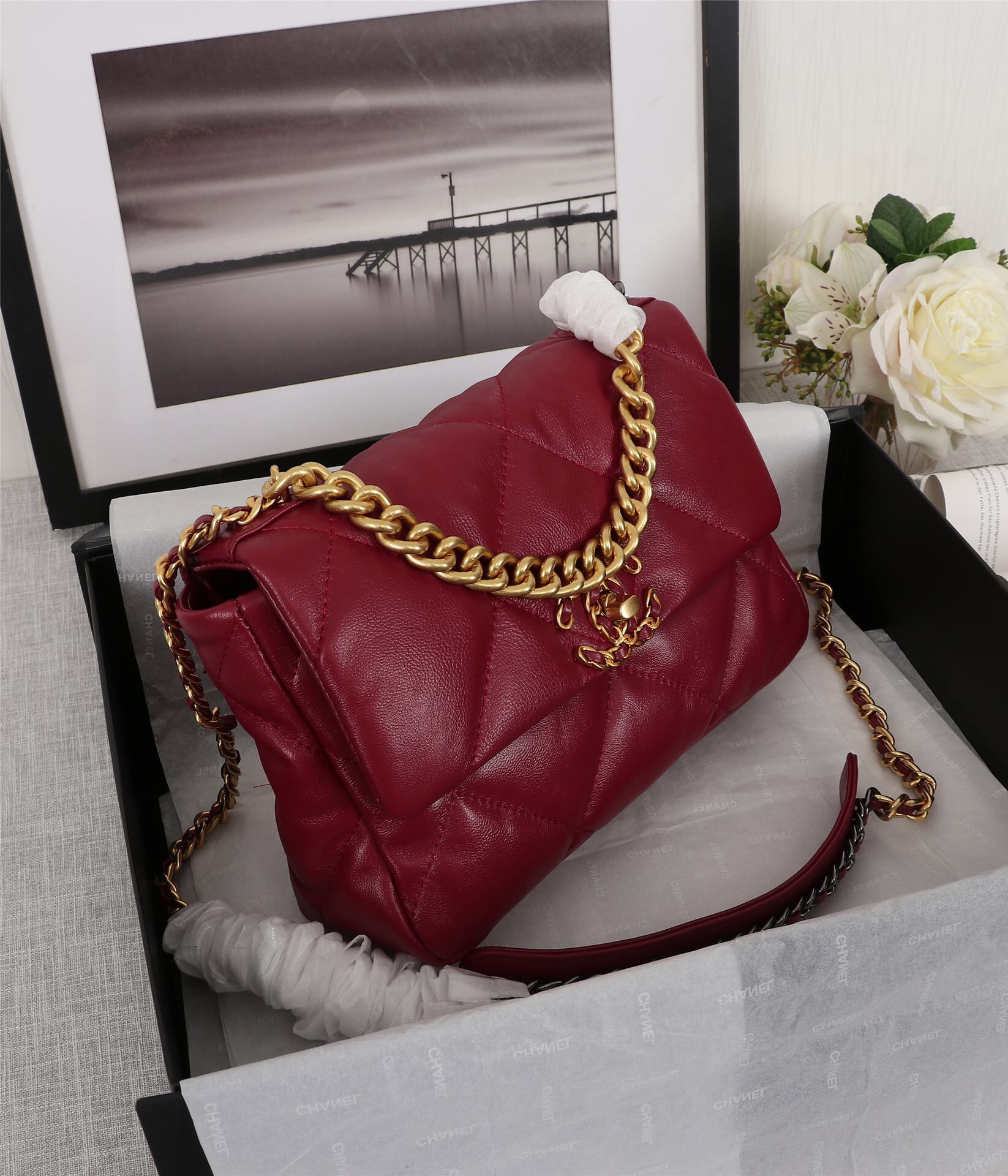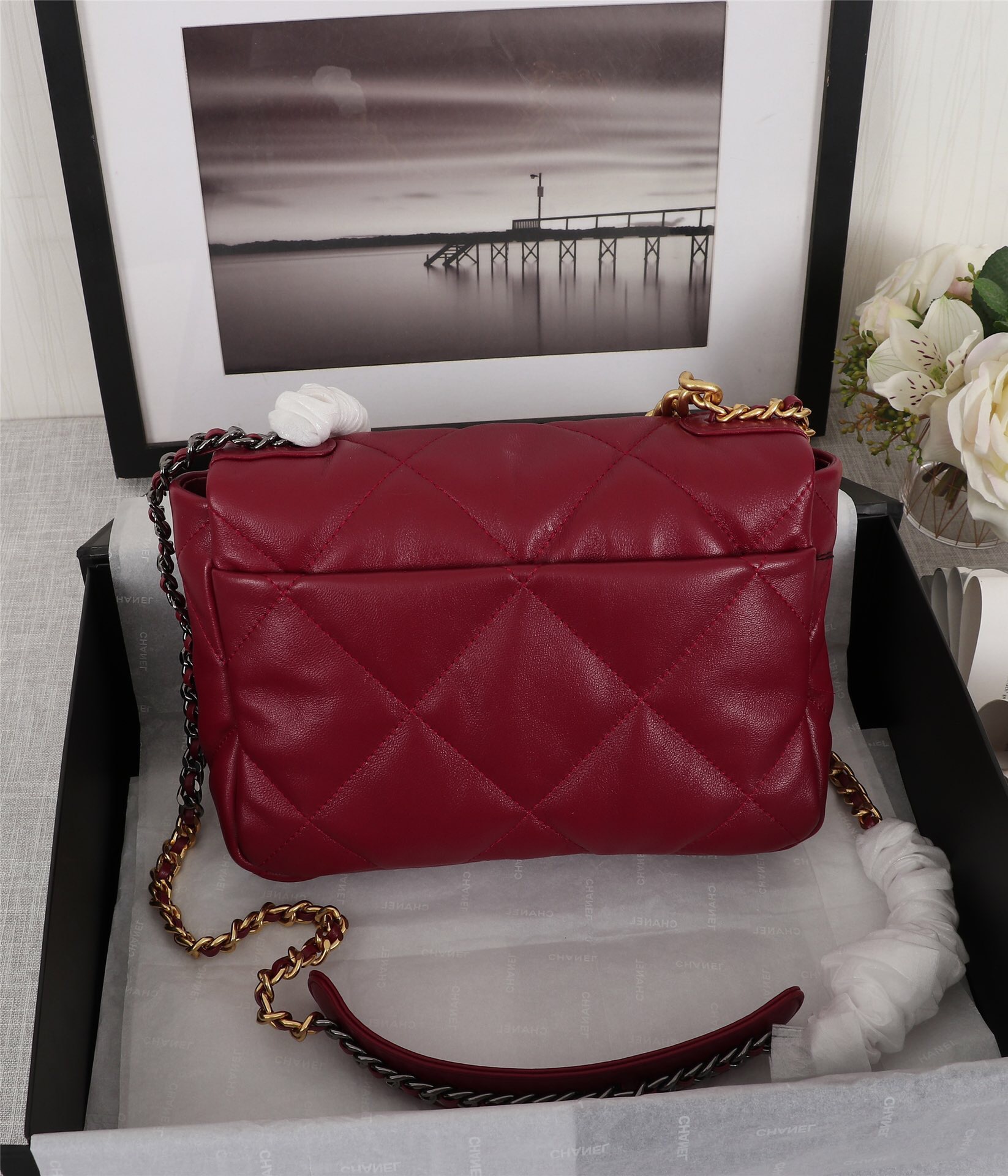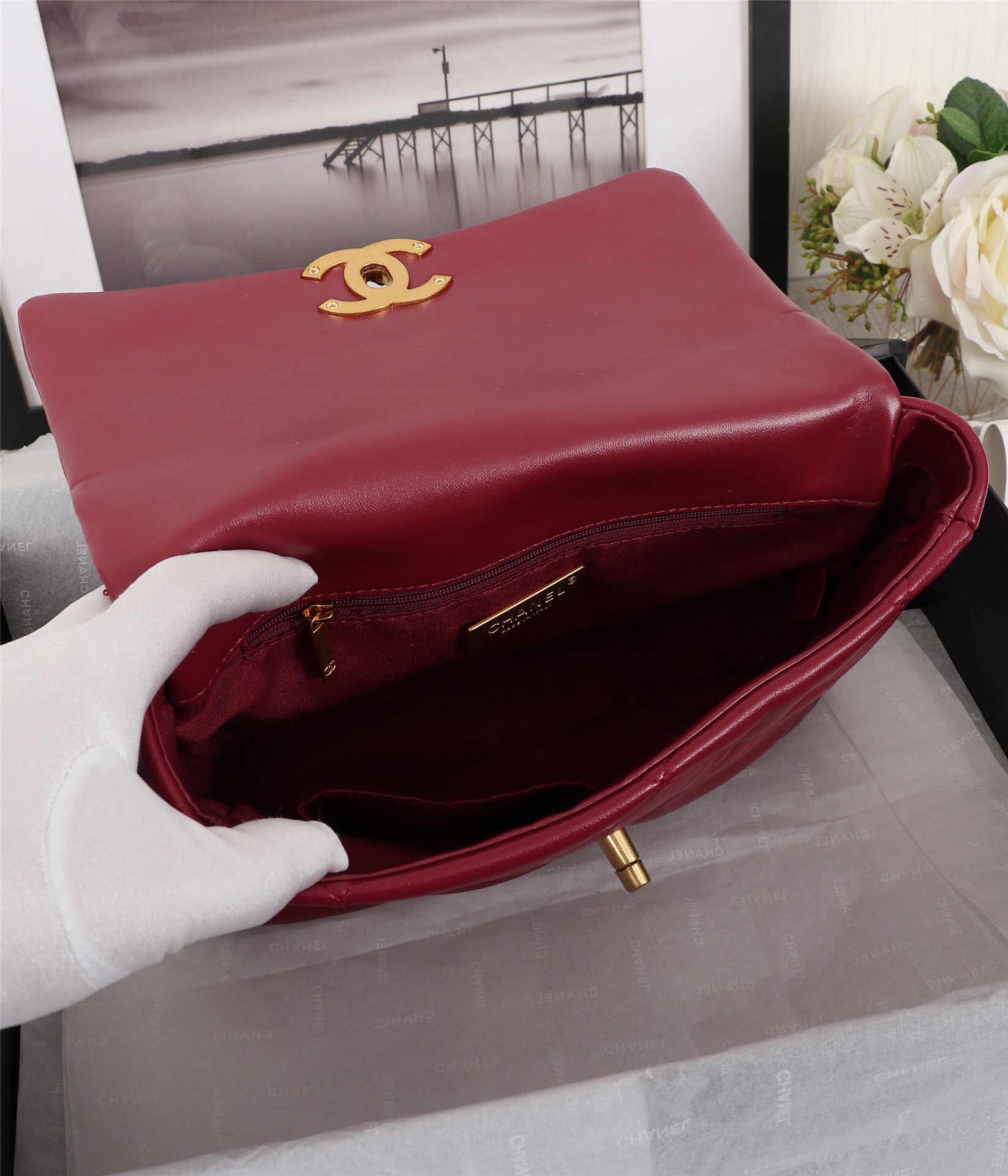 1:1 Mirror QualityReplica Chanel 19 HandbagStyle:AS1160Size: 6.2”x10.1”x3.5”RedLambskinGold-color&Silver-color Hardware