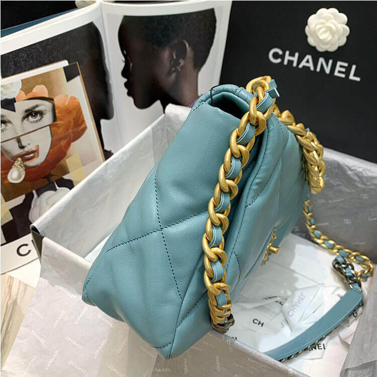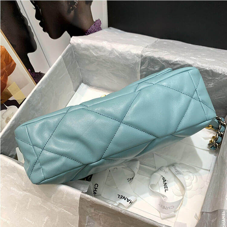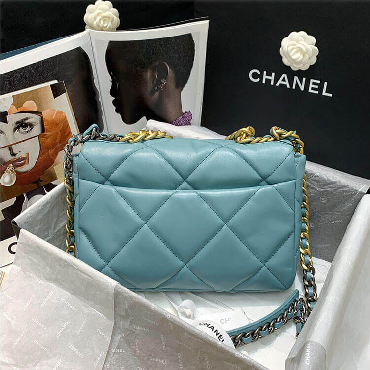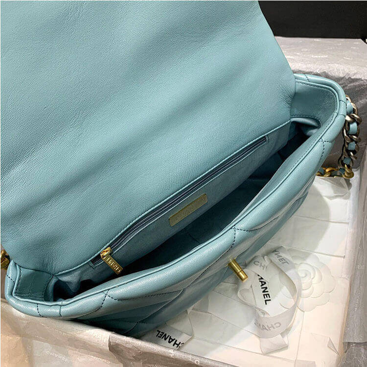 1:1 Mirror QualityReplica Chanel 19 Large HandbagStyle:AS1161Size: 7.8”x11.7”x3.9”BlueLambskinGold-color&Silver-color Hardware