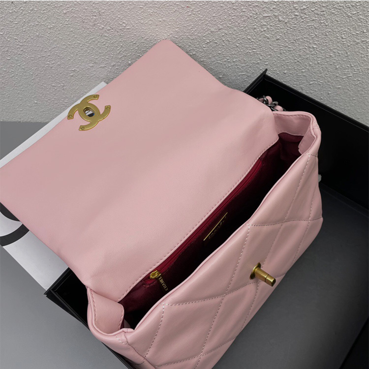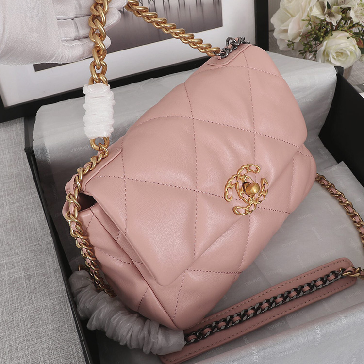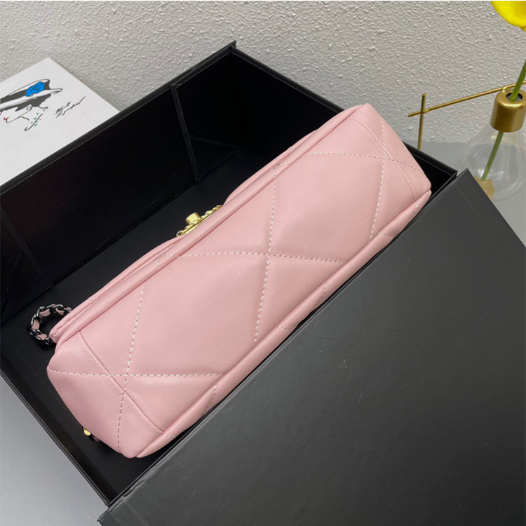 1:1 Mirror QualityReplica Chanel 19 Large HandbagStyle:AS1161Size: 7.8”x11.7”x3.9”PinkLambskinGold-color&Silver-color Hardware