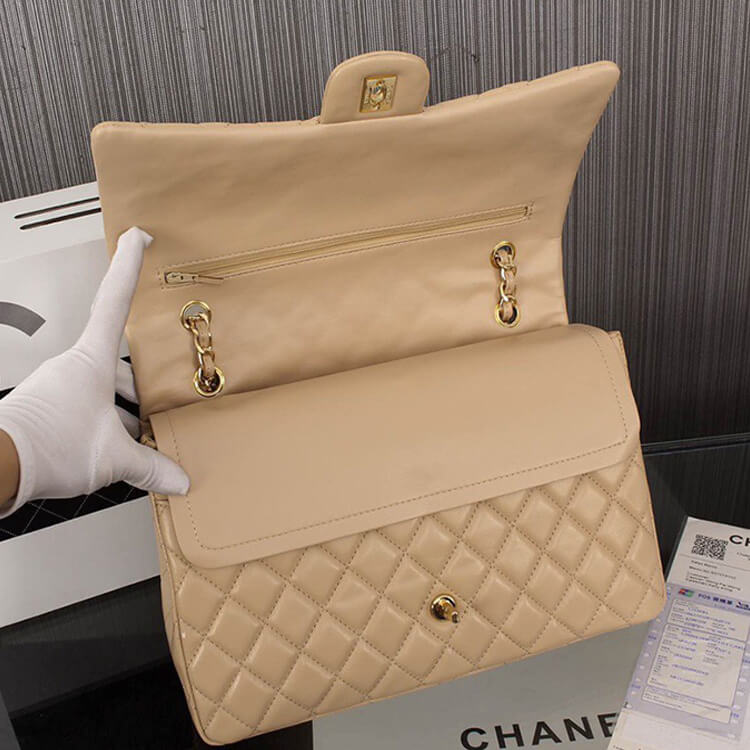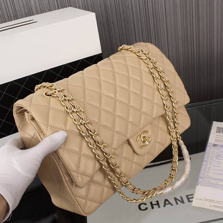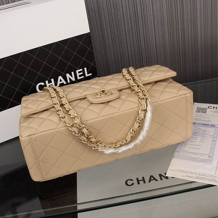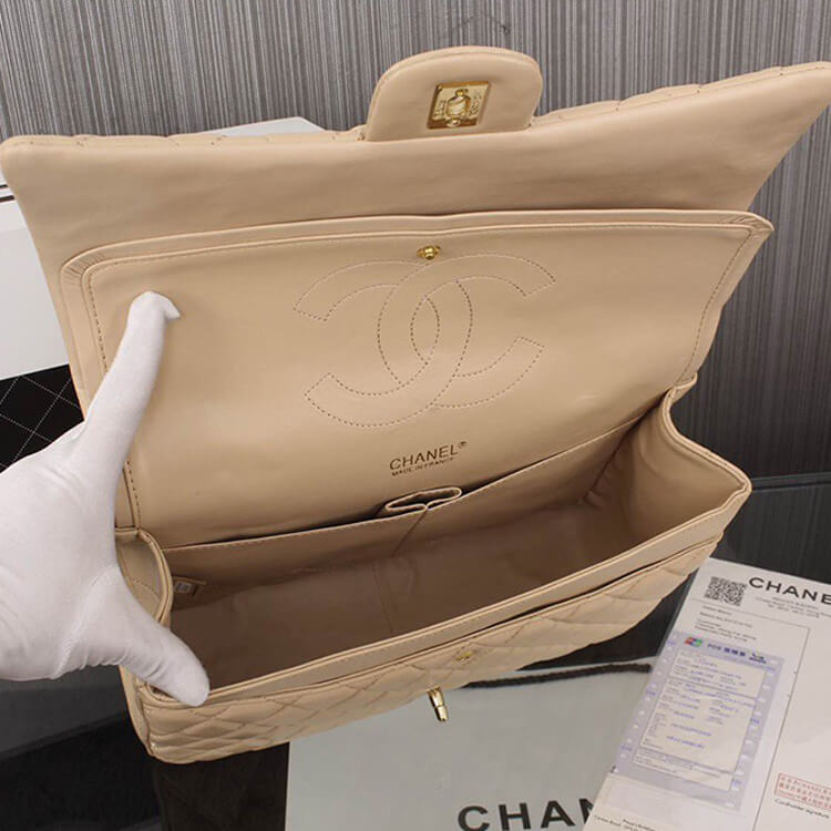 1:1 Mirror QualityReplica Chanel Maxi Classic HandbagStyle: A58601Size: 9” x 12.9” x 3.9”BeigeLambskinGold-Color Hardware