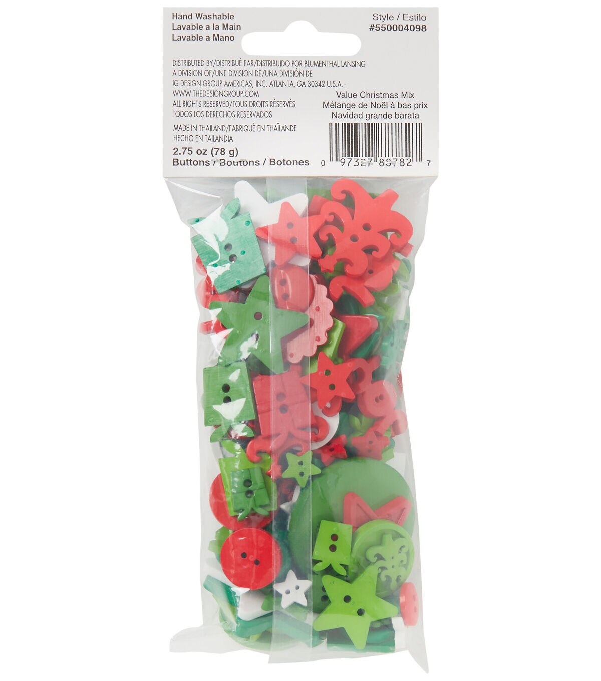 • Favorite Findings 3oz Christmas Green & White Big Bag of Buttons