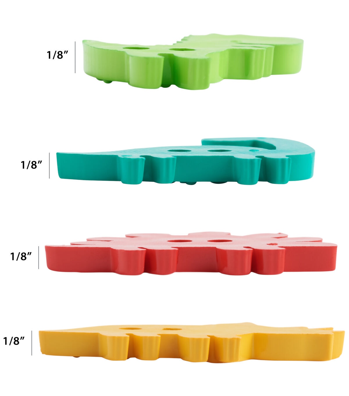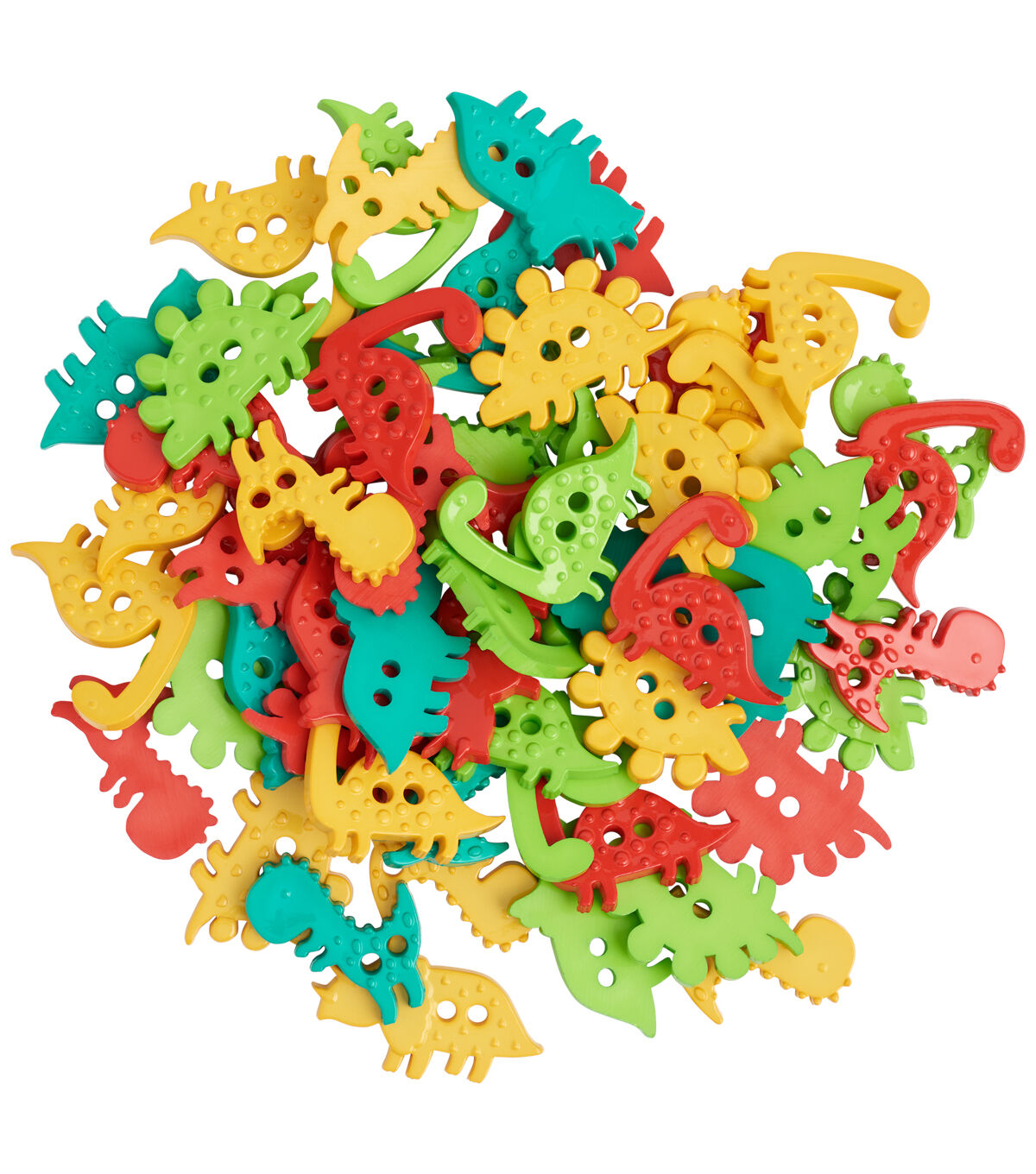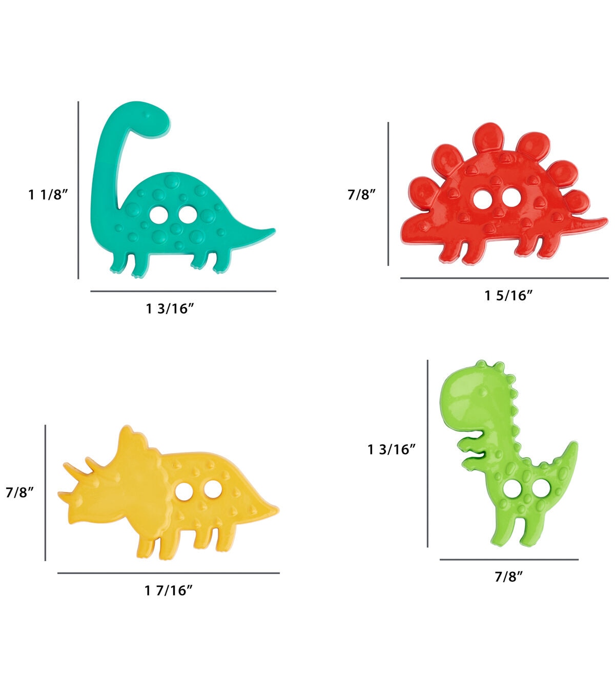 Create unique gifts for a kid fascinated by dinosaurs using the Favorite Findings Dinosaur 2 Hole Buttons Value Pack - Multi. These sew-through buttons are shaped like Stegosaurus, Triceratops, Brontosaurus and T-Rex. They sport vivid hues and will add a pop of color to your handmade creations. You can use them to accentuate papercrafting and sewing projects.